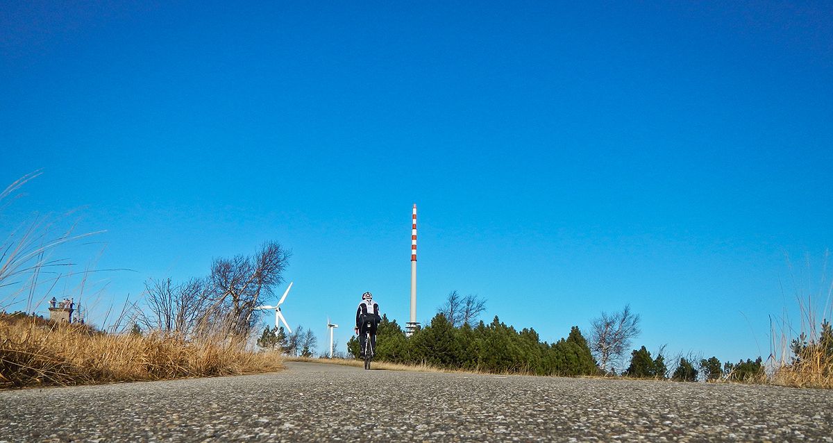 Ab 600m Höhe musste die Jacke...das kurze Trikot aufgerissen und die Handschuhe