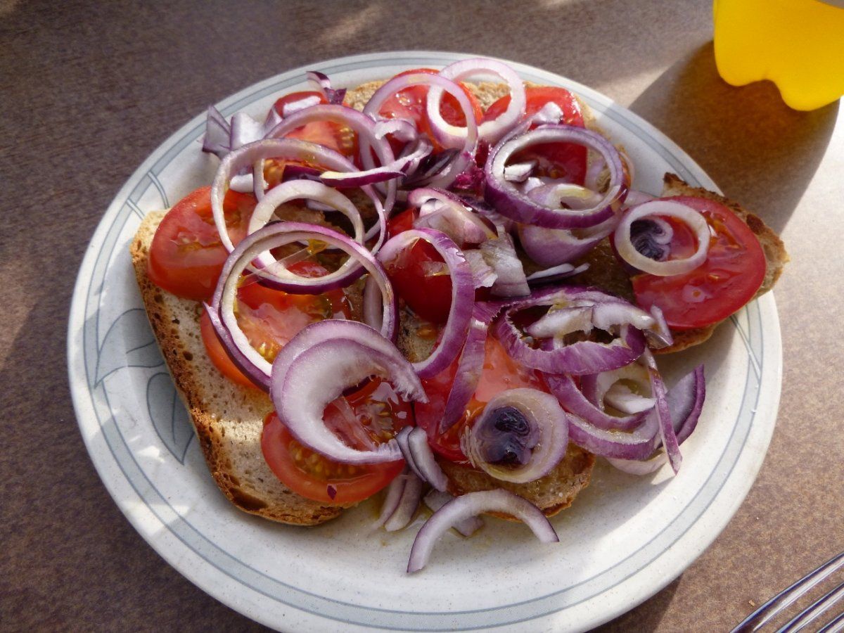 british breakfast. da man nach so ner bombe kein rad mehr fahren kann haben wir das ganze zum abendessen umfunktioniert.
