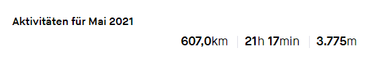2021 bis heute 1300km. Auch mal hügelige (indgesamt 8500m) dabei.