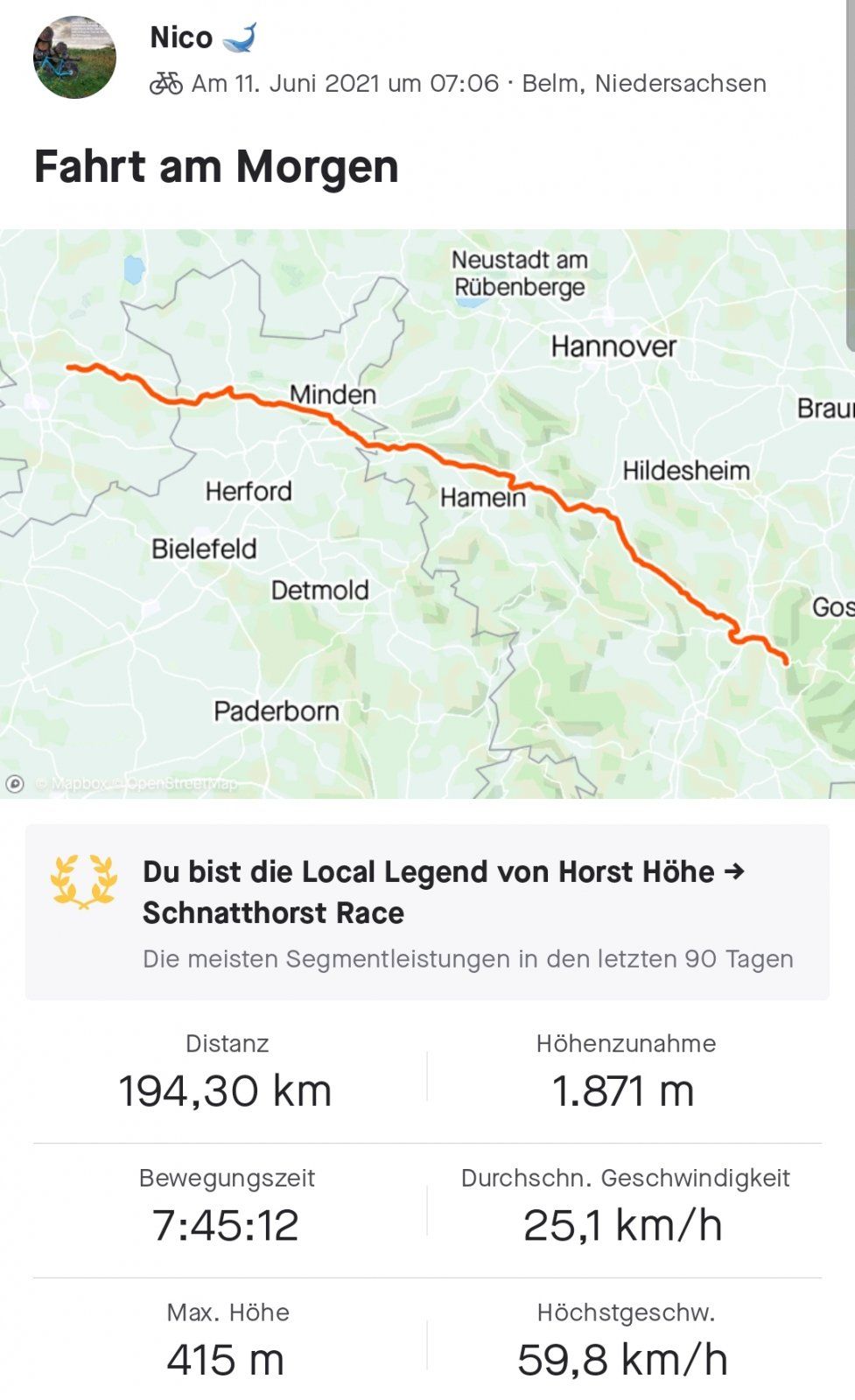 Nonstop Hamburg habe ich auch nicht geschafft, dafür bin ich dann aber Osnabrück-Bremen-Osnabrück an einem Tag gefahren.