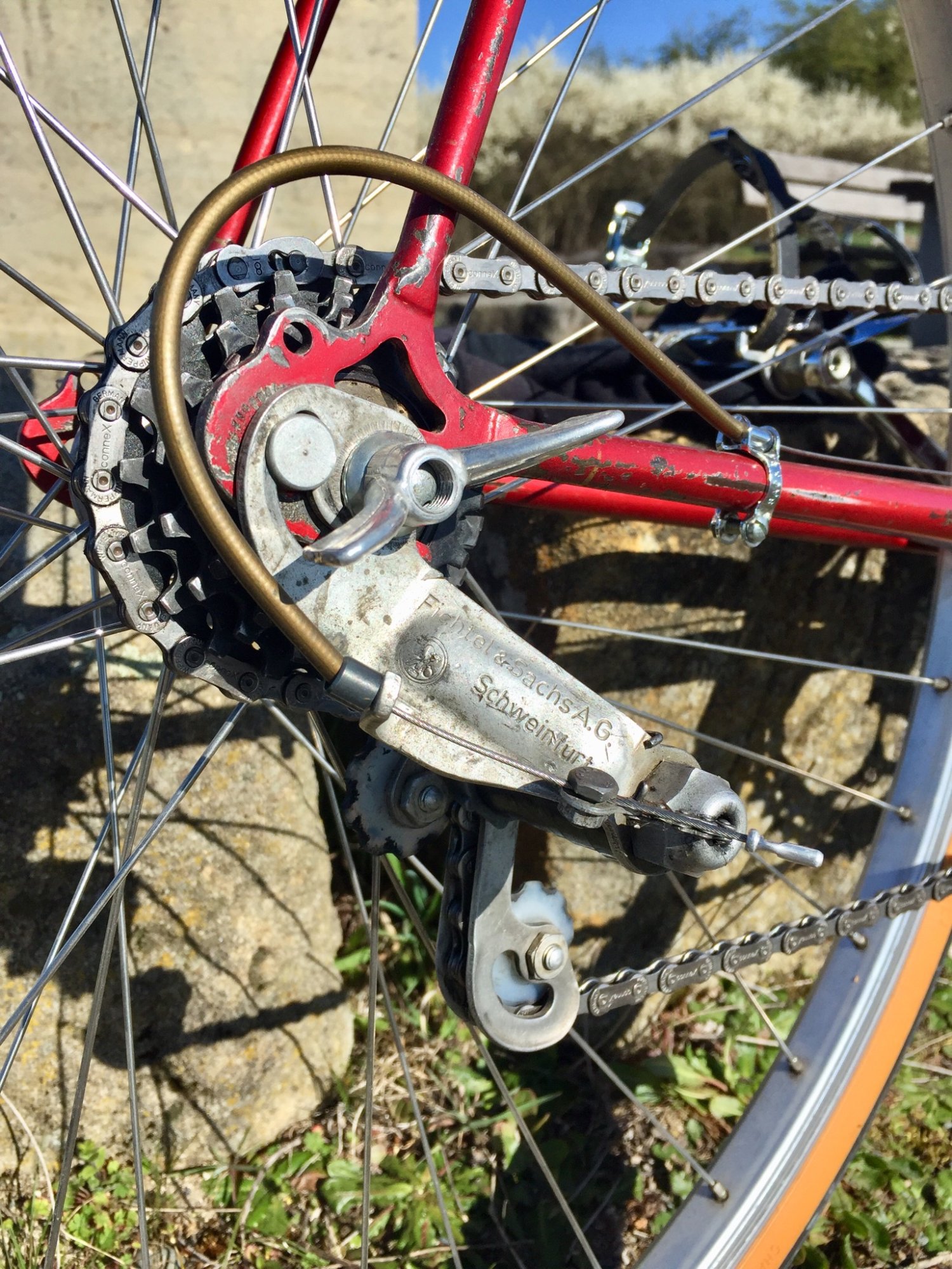 Zu Hause angekommen suche ich im Keller meinen 14-26 4-fach Freilauf, von dem ich sicher weiß, das ich ihn habe. Den hatte ich NOS vor vielen Jahren bei Herrn Fingerhut für mein Ru-fa gekauft. Mit der Übersetzung die jetzt drauf ist, brauche ich keinen ernsthaften Berg fahren, selbst wenn das Sprunggelenk wieder Ruhe gibt und ich die vier, fünf Kilo noch Gewicht verliere.