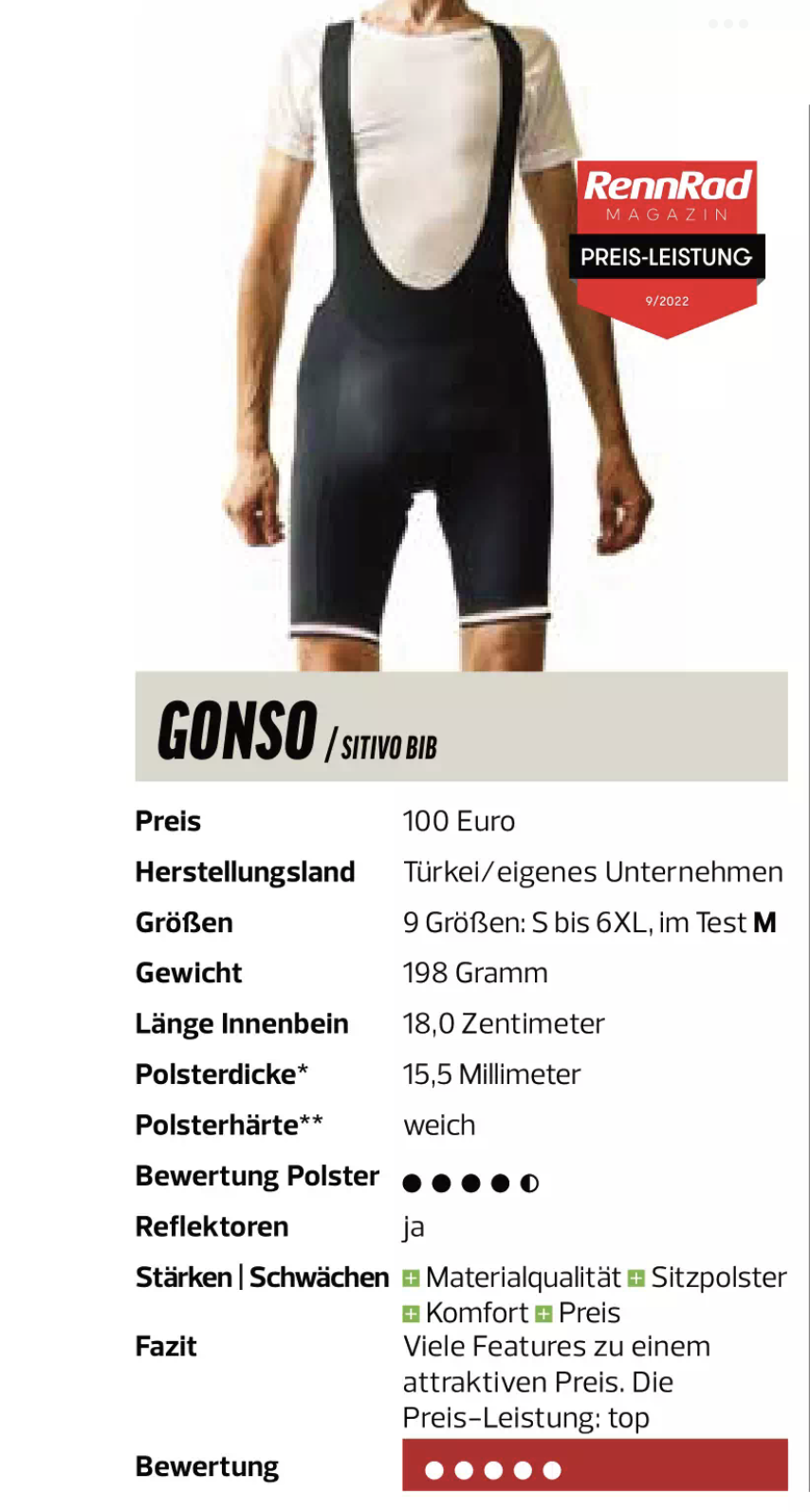 Naaja das kann ich so nicht stehen lassen, ich habe ne kurze Sitivo Trägerhose und die sitzt bei mir in Größe L knalleng, bekomm ich grad noch so über den Ars.. gezogenGonso hat halt deutsche Größen. Und nicht den Schnitt der Presswurst, äh, Racecut. Noch nie.