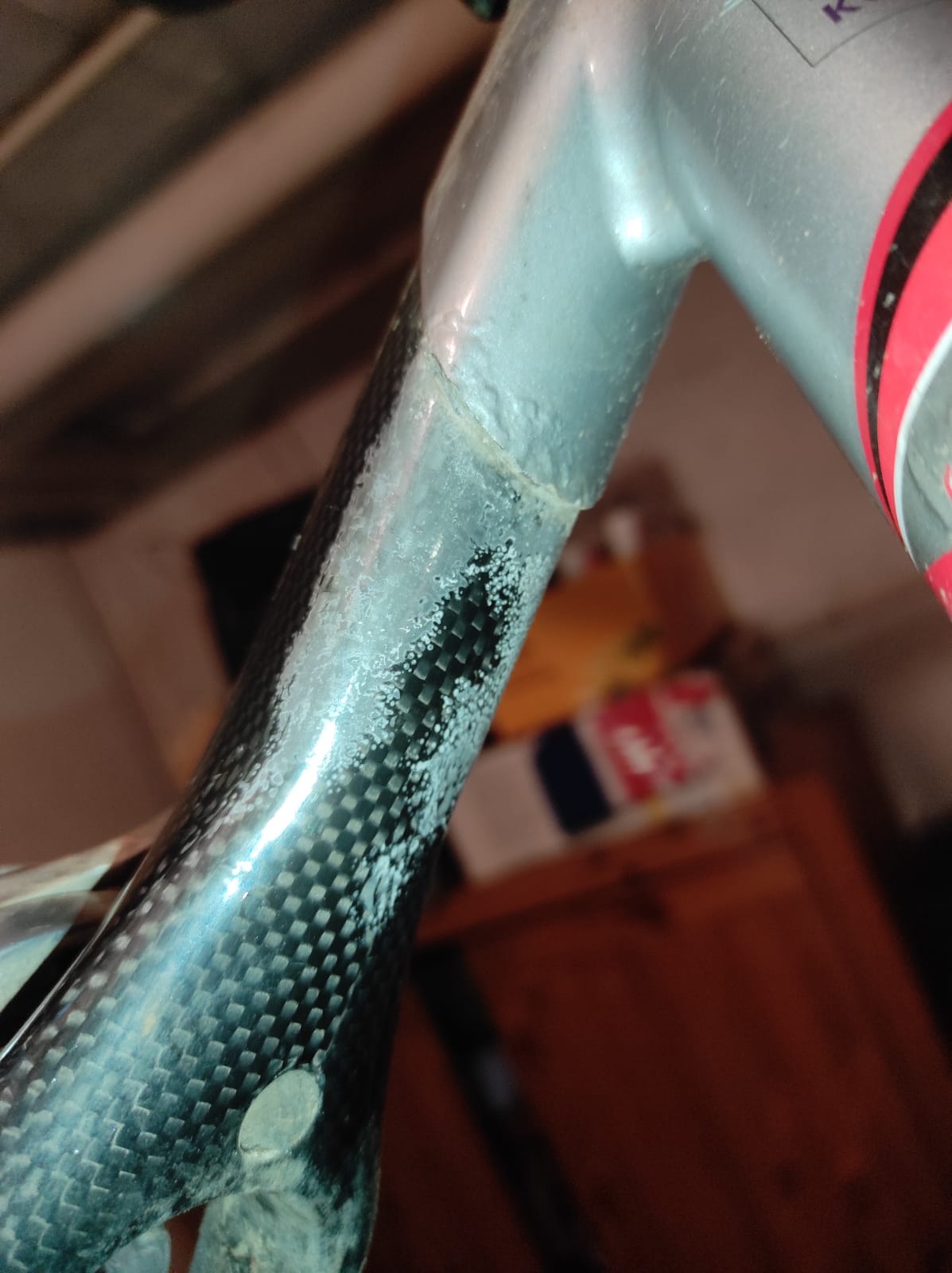 Inzwischen fahre ich nicht mehr mit dem Bike, da die Klebeverbindung nicht mehr ganz super aussieht (siehe Bild).