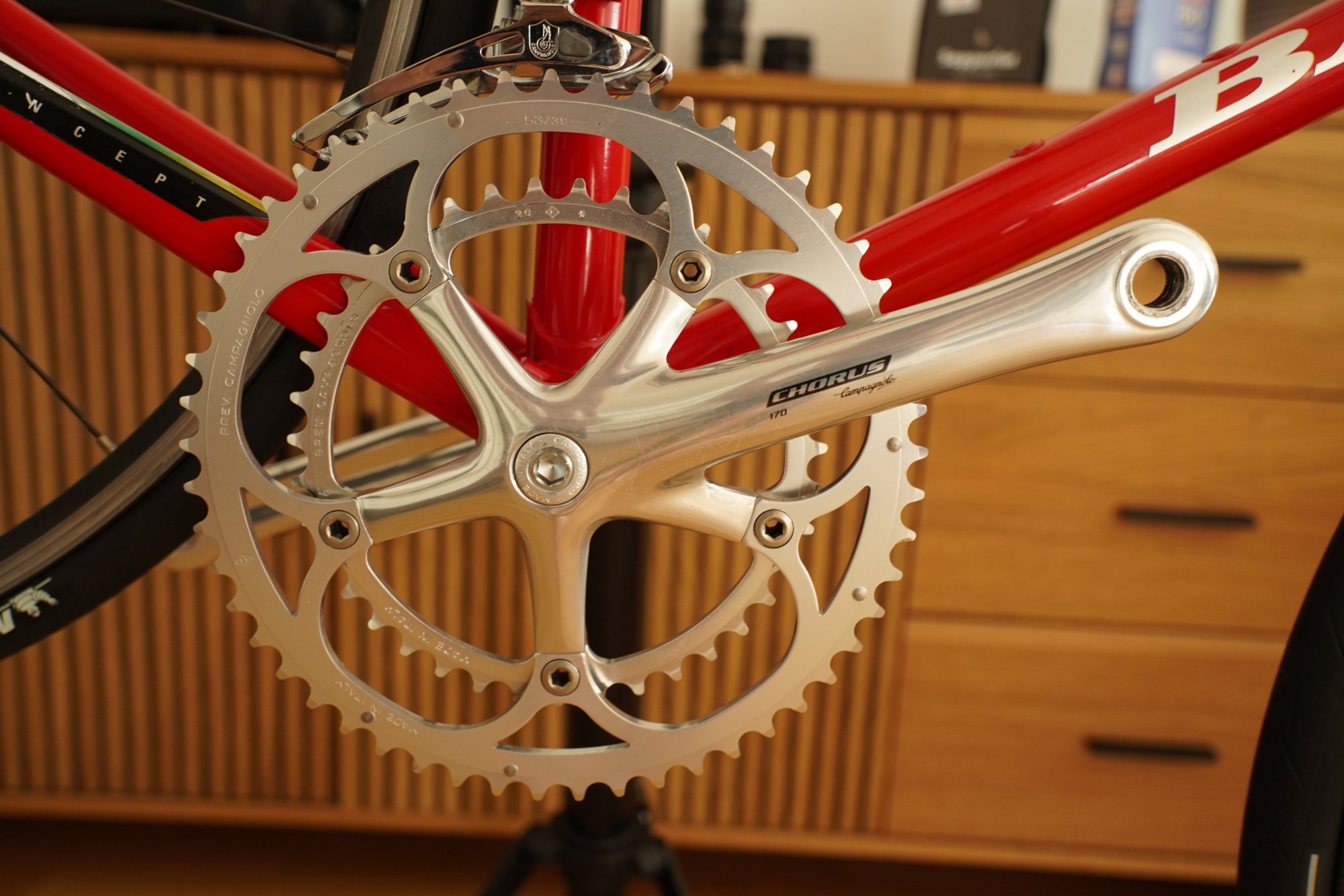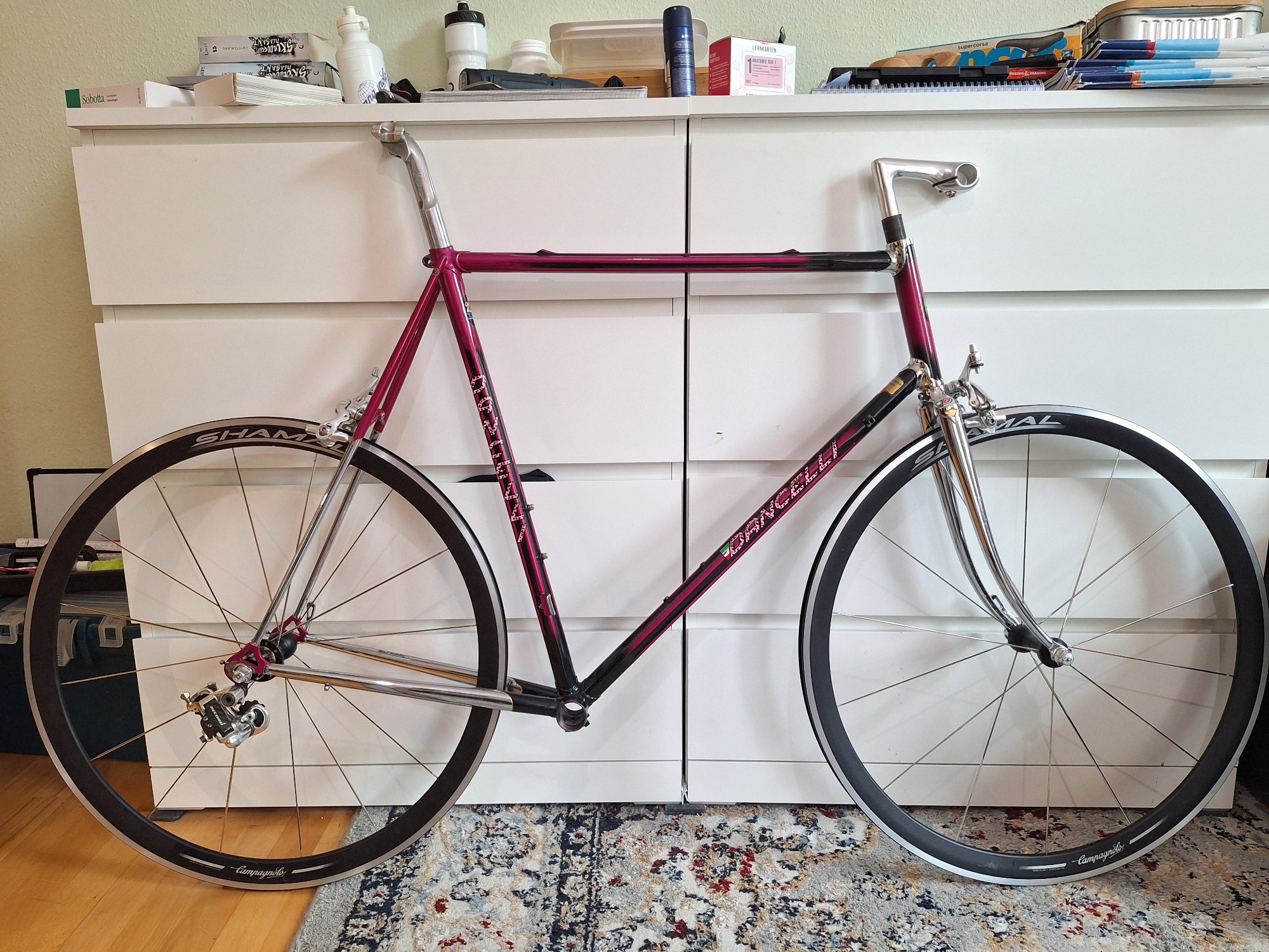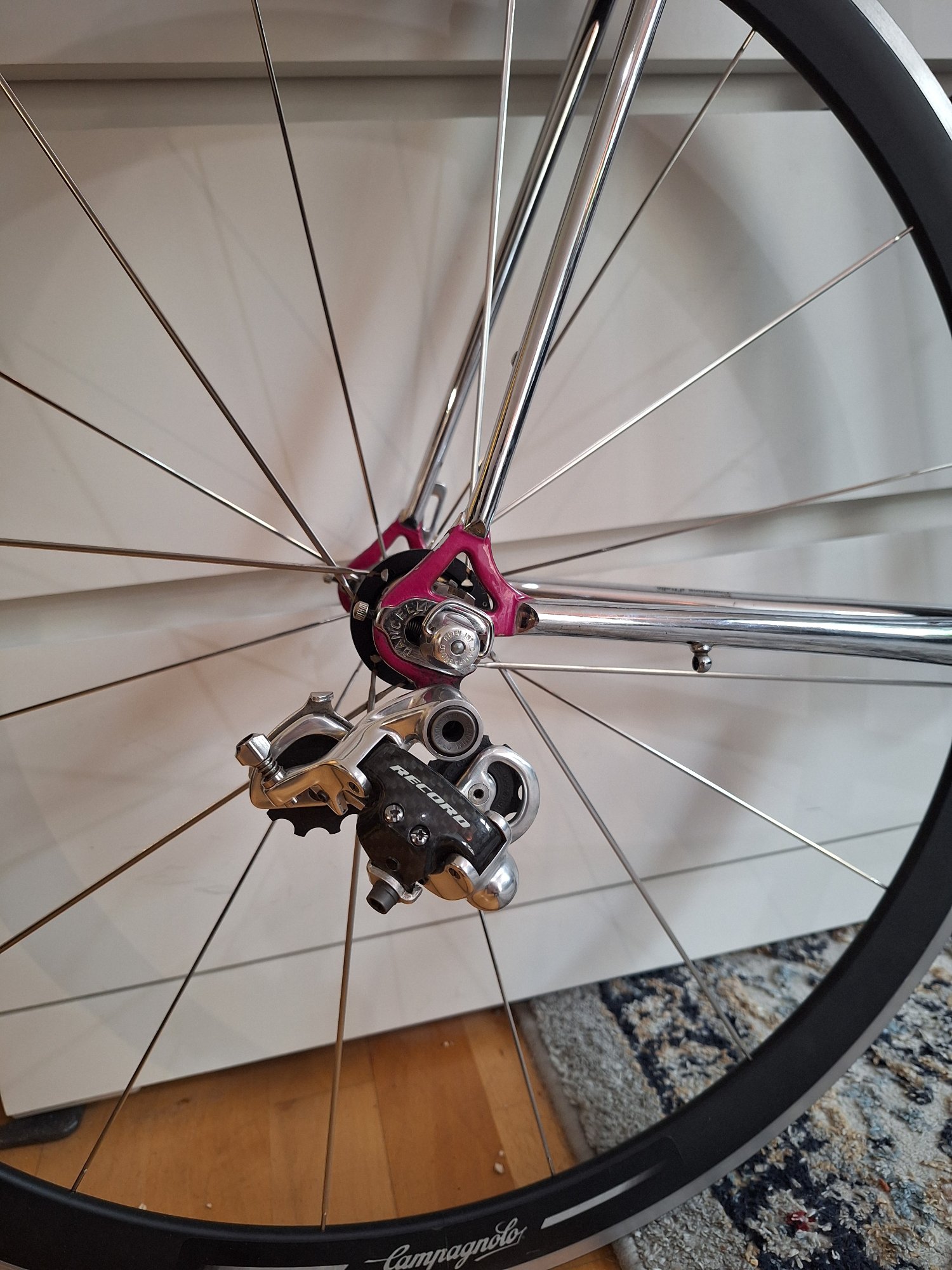 Es war ursprünglich eine 600 Ultegra Gruppe verbaut und ich baue auf 10s Campa Chorus/Daytona um.