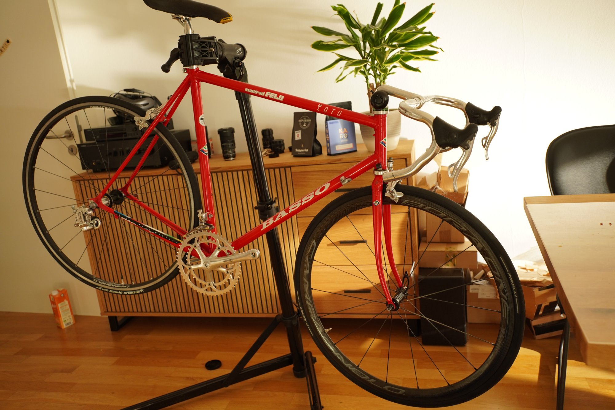 Laufräder bin ich noch etwas unschlüssig. Die Bora sind raus, das Vorderrad war nur notgedrungen montiert.