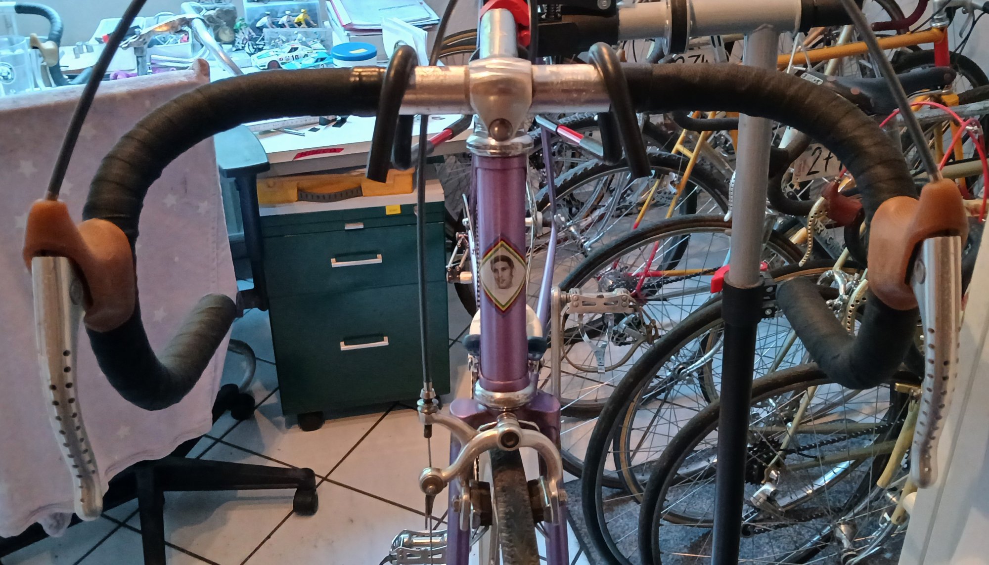 getauscht. Eben noch neue Züge abglängt, da der Lenker doch deutlich breiter war, Gewebeband gewickelt - eine Arbeit, die ich gar nicht mag - und gleich gibt es noch die erste Schicht Schellack fürs Lenkerband.