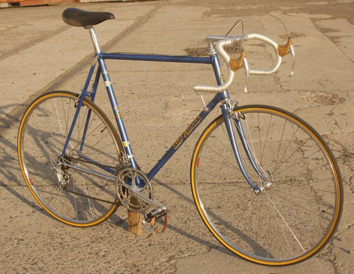 Ein Kondor Sanremo RH59 mit Weinmann 605 Bremsen, einer kompletten Shimano Altus Schaltung, Varese Lenker, Selle Royal Wildleder Sattel,..und originaler weißer Kondor-Luftpumpe
