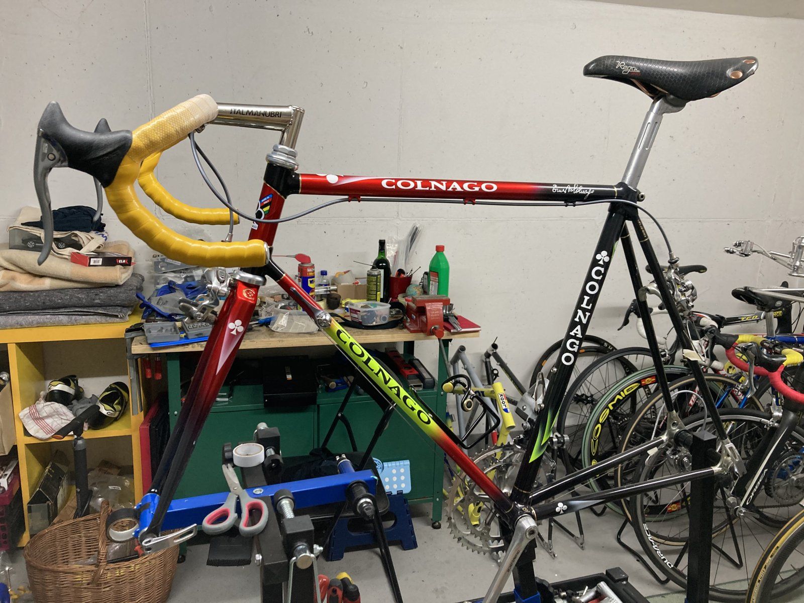 Das ist ein 63er Rahmen (aber nur 57 cm kurz). Bin 1,89 m, habe aber 93 cm Schrittlänge. Deshalb fahre ich am liebsten Rahmen ab 62 cm Höhe (bis 64/65 cm) mit kurzem Oberrohr (sonst kommen die Arme nicht an den Lenker).