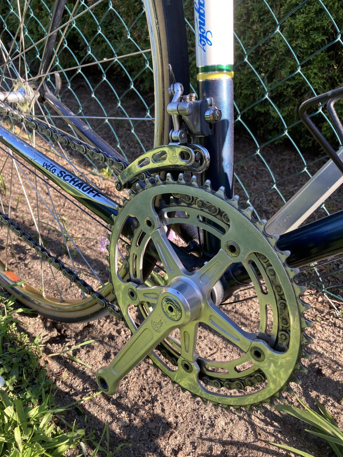 Wie ihr seht sind bei meinem 84/85er Coppi z.Z. noch die Gran Sport Bremsen dran. Ich überlege aber, mir diese eher an mein älteres Di Bartolomei zu schrauben. Für das Coppi würde ich gern was zeitgemäßes, schwarzes von Gipiemme oder Modolo nehmen...mal sehen.