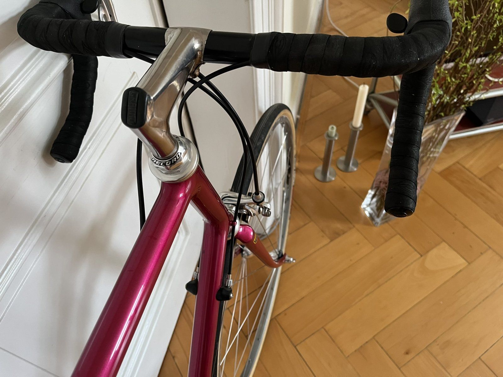 Das ist dann aber halt auch der Unterschied zwischen der klassischen vom Colnago Super abgeleiteten Geo der 70er und 80er und der Weiterentwicklung in den 90ern. So negativ finde ich es nicht…An diesem Rad sieht man deutlich wie der kurze Hinterbau sich für mich negativ auf die Proportionen auswirkt, bei diesen Rahmenhöhen.