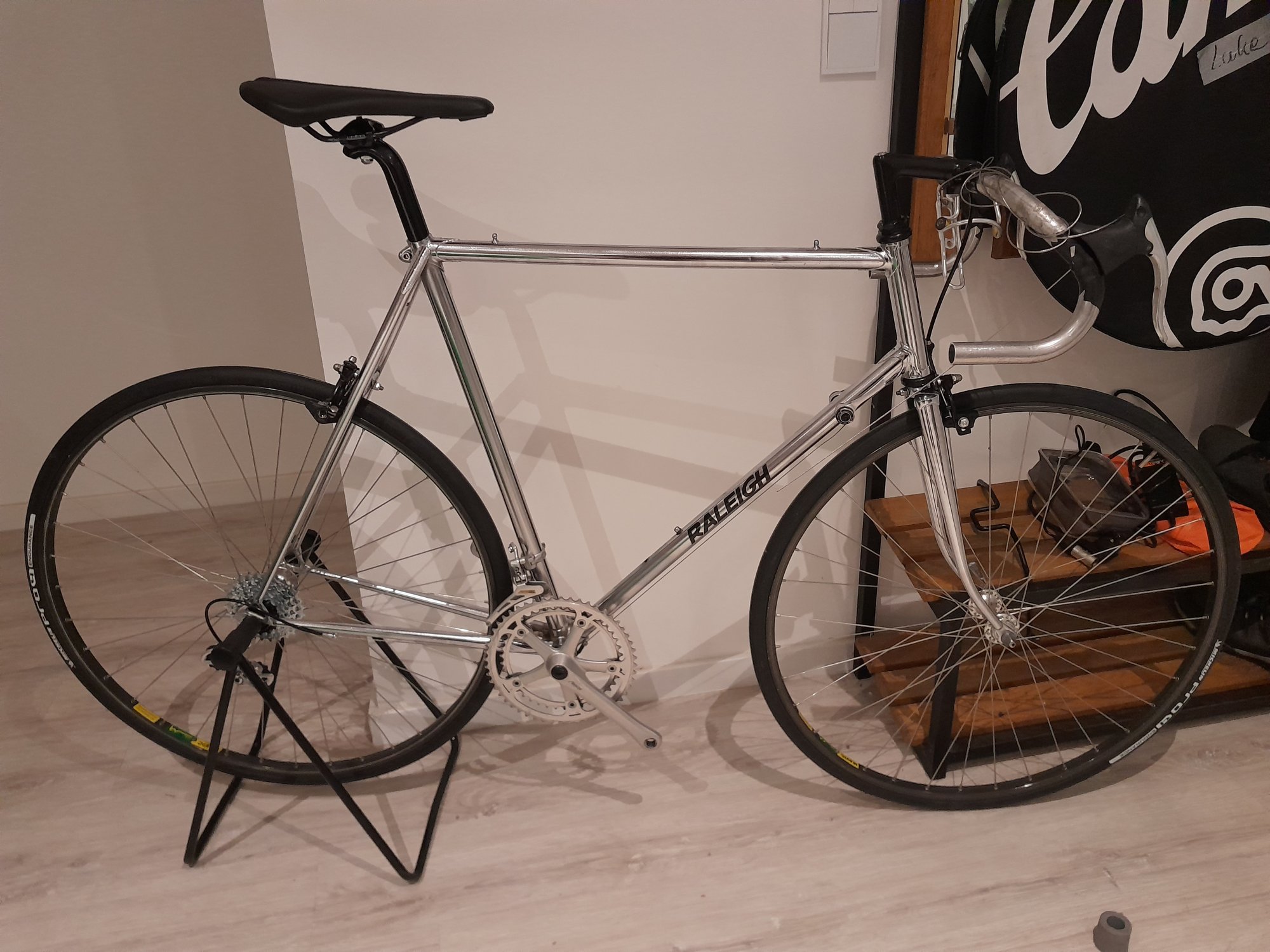 Es gibt doch sowas, kenne ich von den neuen Schaltwerken.Das verchromte Raleigh Rahmenset was ich nicht verkauft bekam und die Suntour-Gruppe die auch niemand haben wollte passen ganz gut zusammen.
