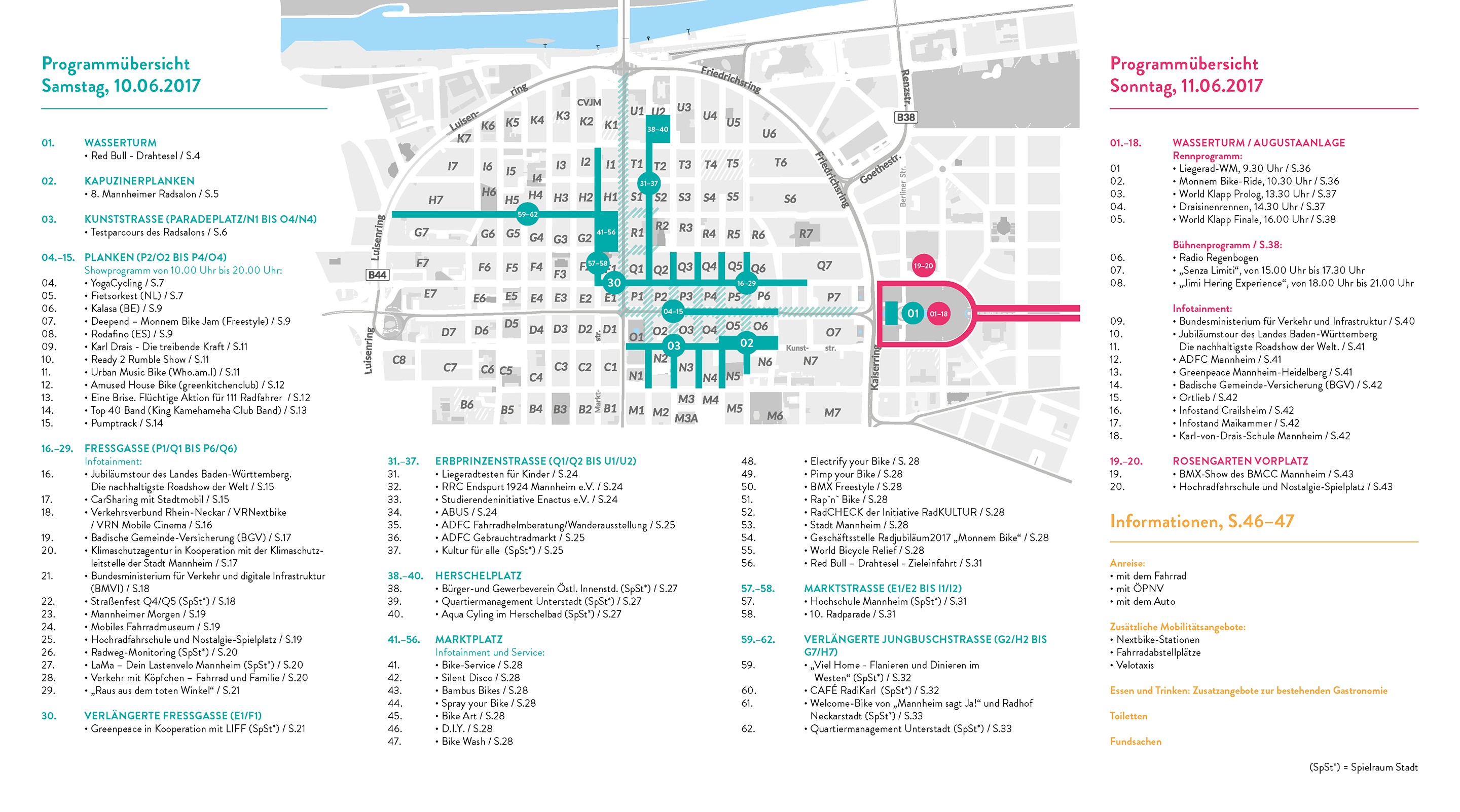 Programmübersicht mit Karte für SA/SO 10./11.06.2017 in Mannheim beim Monnem Bike – Das Festival