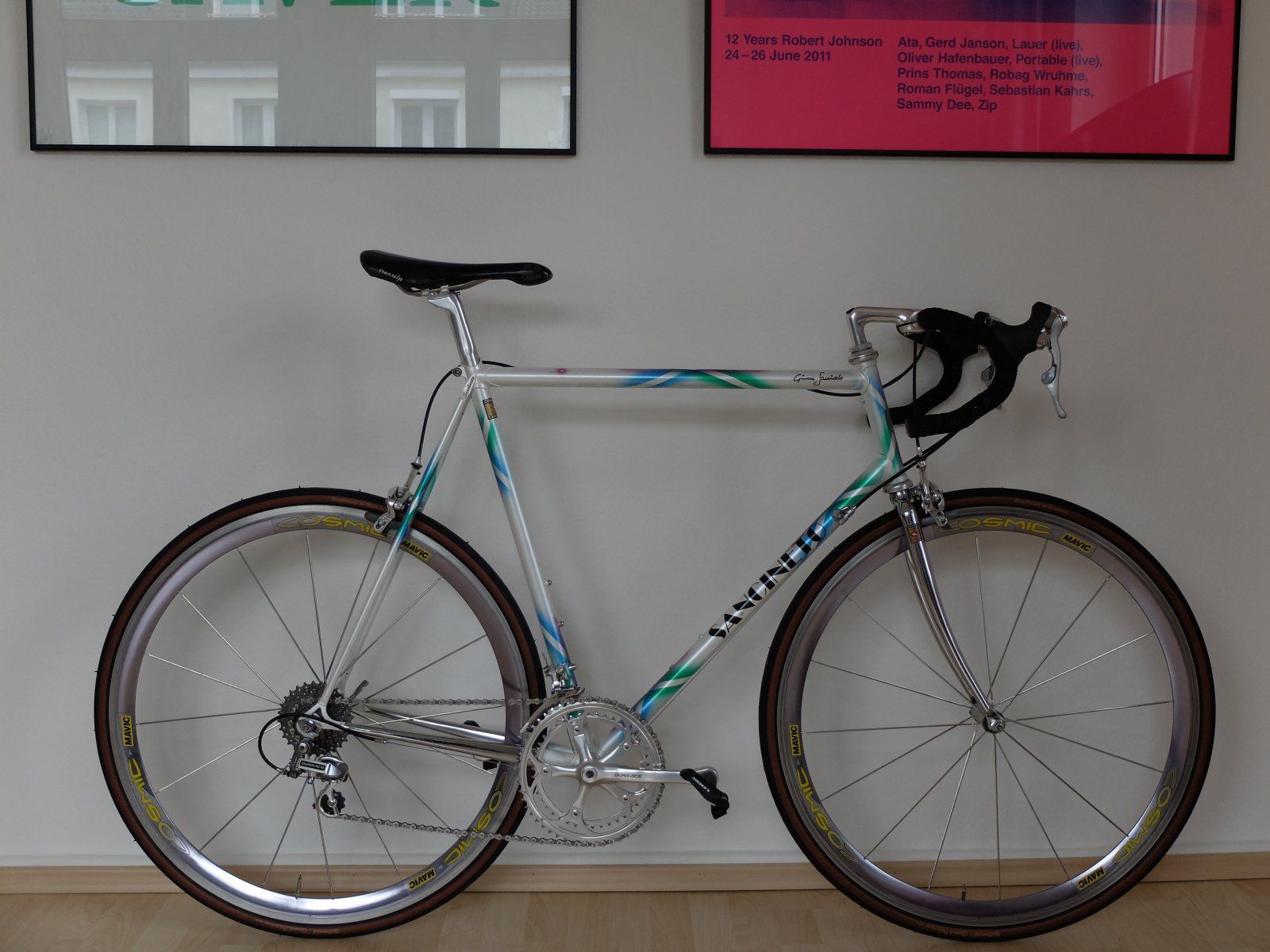 Wer sich über die klassischen Bremshebel wundert : ich habe mich ganz bewusst gegen STI etschieden, weil ich die einfach nicht mag. Ist auch gar nicht mal so eine Anachronismus...dies ist ein ganz frühes RSL von ca. 1993 und da könnte man auch noch Rahmenschalthebel rechtfertigen.