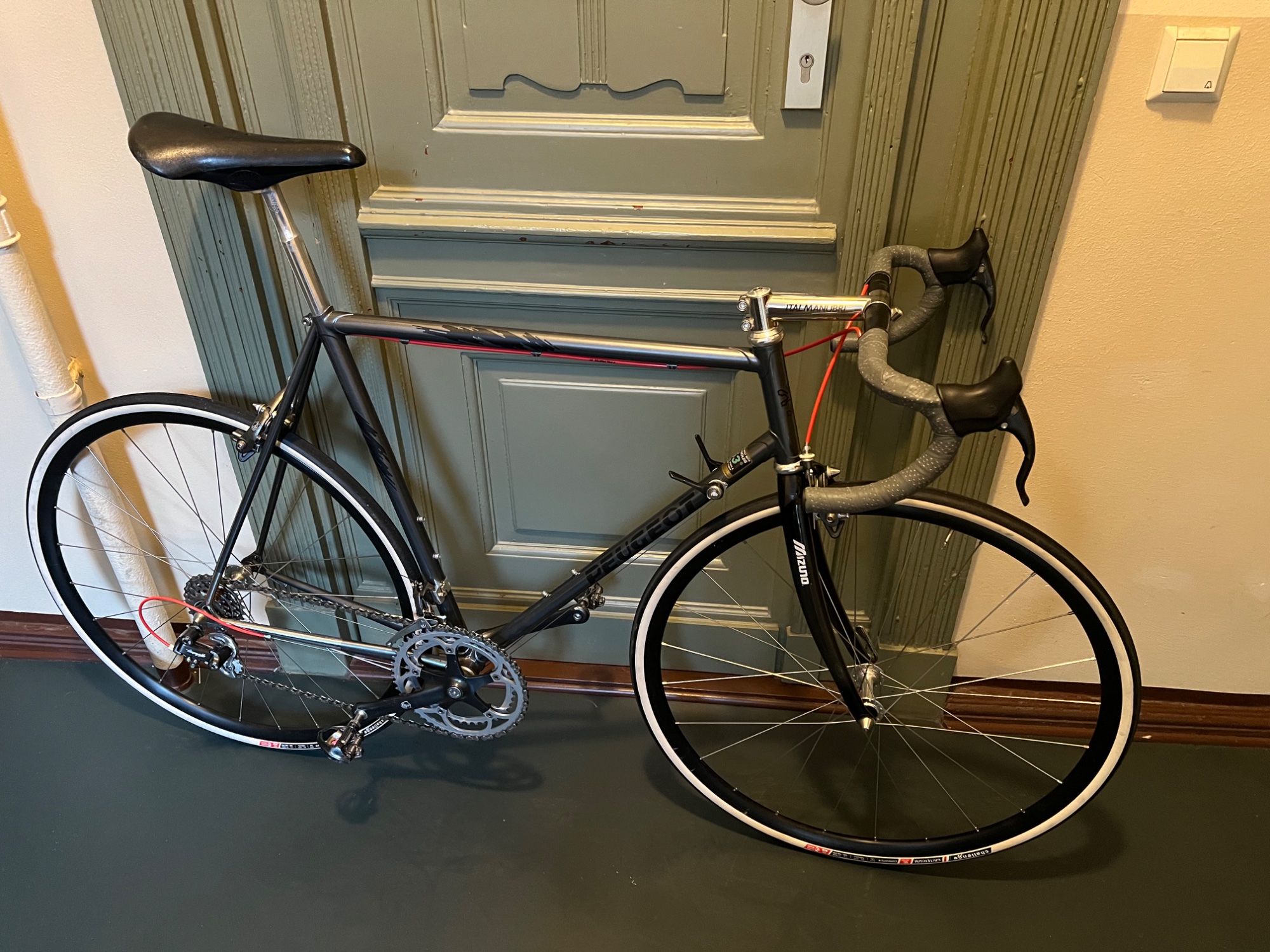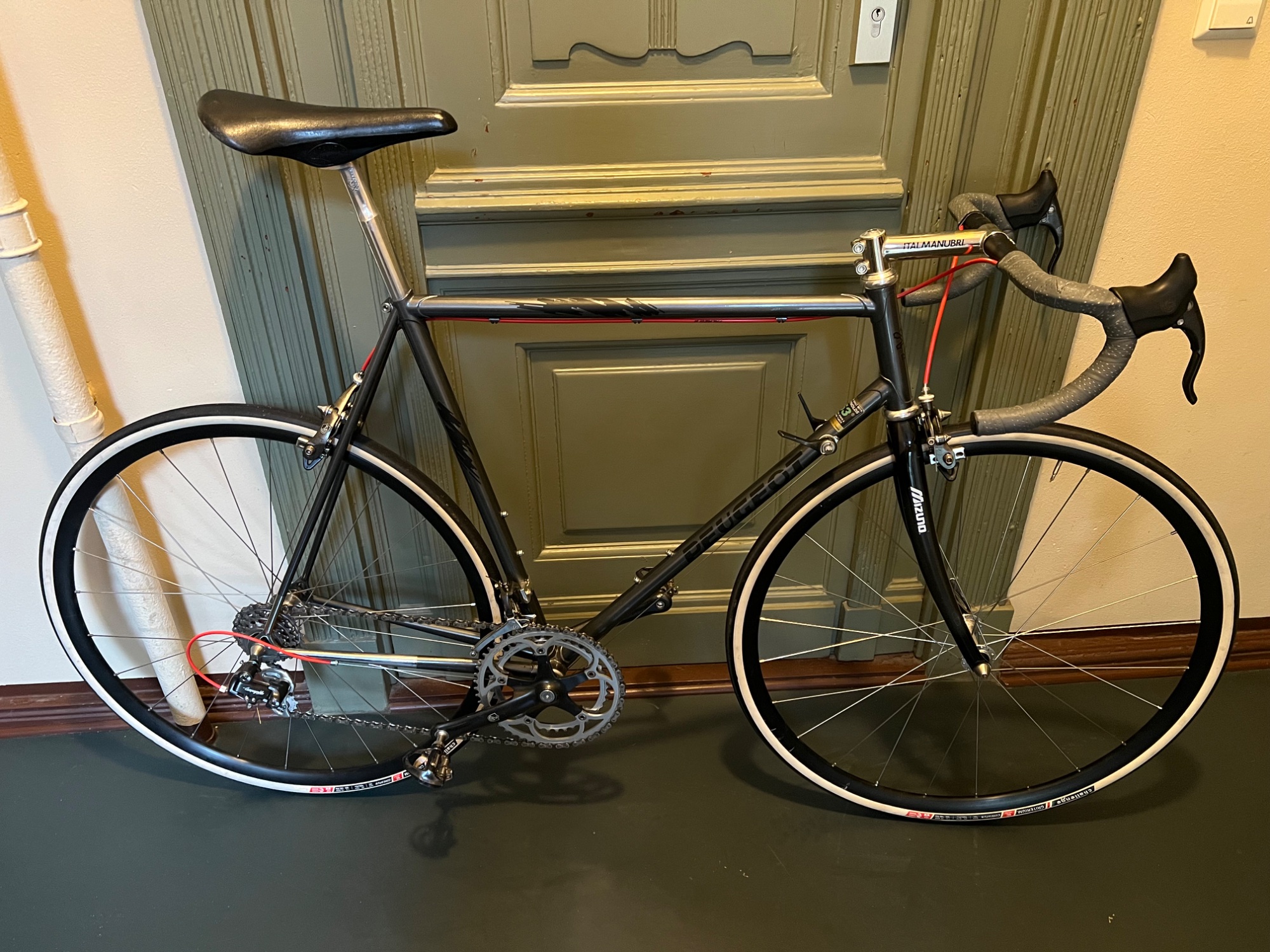 nach 1993 auf Ahead umgerüstet wurde (ob es die Mizuno Gabeln Mitte '90 schon gab, konnte ich allerdings nicht rauskriegen). Bremst und schaltet merklich besser als die vorher montierten Simplex und CBL Teile. Die Gabel wirkt sich durchaus positiv auf die Fahreigenschaften aus, ob das am Carbon, an der veränderten Geo oder am Ahead System liegt kann ich allerdings nicht genau sagen.