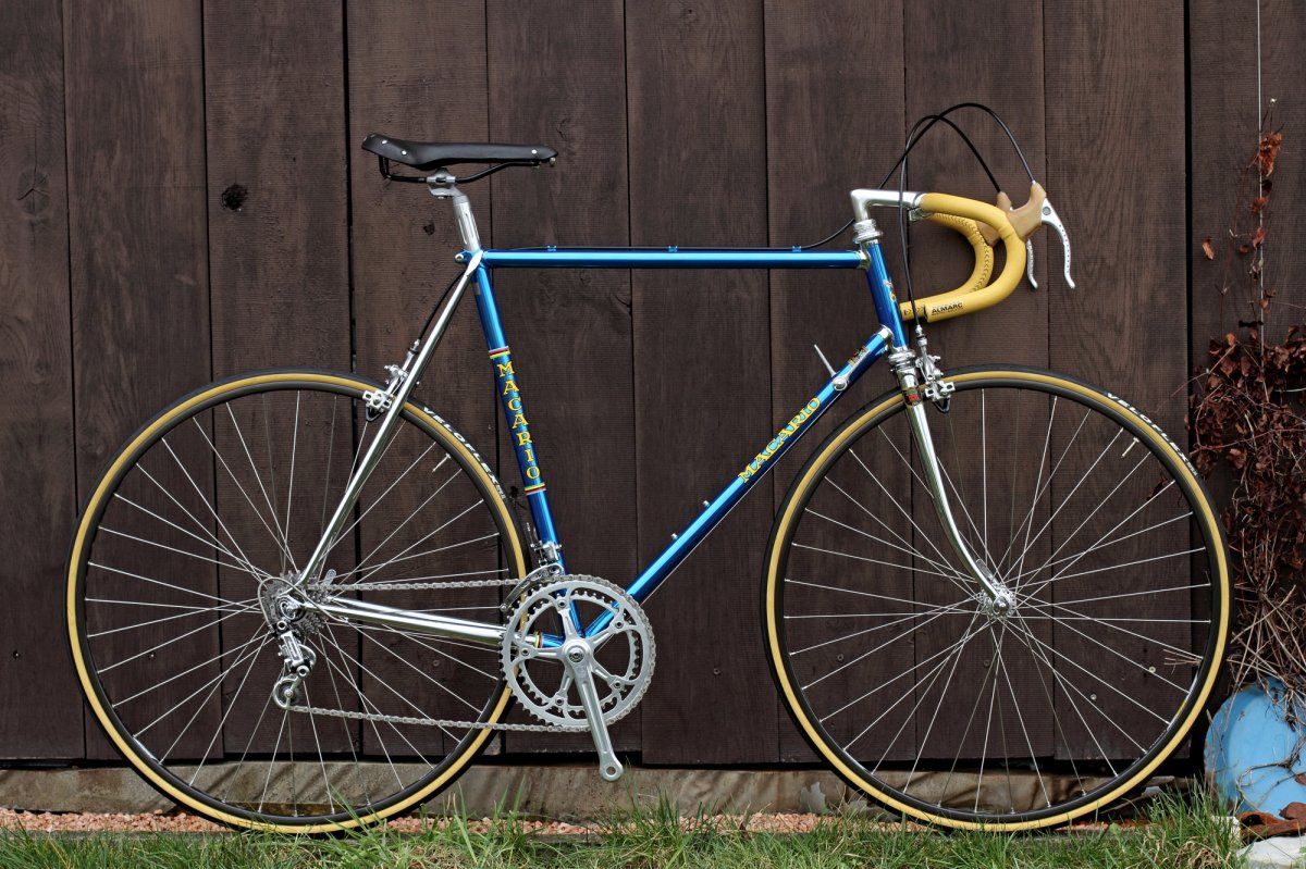 Dieser Aufbau, ein Macario Cromovelato "Super Record" aus Reynolds 531 SL, ist ganz euch gewidmet. Ich habe den Rahmen dank eines Hinweises in den Bestsellern vor knapp zwei Jahren von Spanien nach Deutschland geholt und möchte euch das Endprodukt nicht vorenthalten. Den Rahmen schätze ich auf Anfang, eher Mitte '80. Ob und wie der Rahmen im Hause "Macario" produziert wurde kann ich leider nicht sagen. Die Informationen, die ich gefunden habe sind eher spärlich und überwiegend auf spanisch und geben wenig konkrete Hinweise. Die Ausfallenden sind Campa, der Bremsteg Gipiemme, die Gewinde italienisch ... Falls noch wer interessante Informationen hat würde ich mich freuen - genauso über Anregungen o. ä.