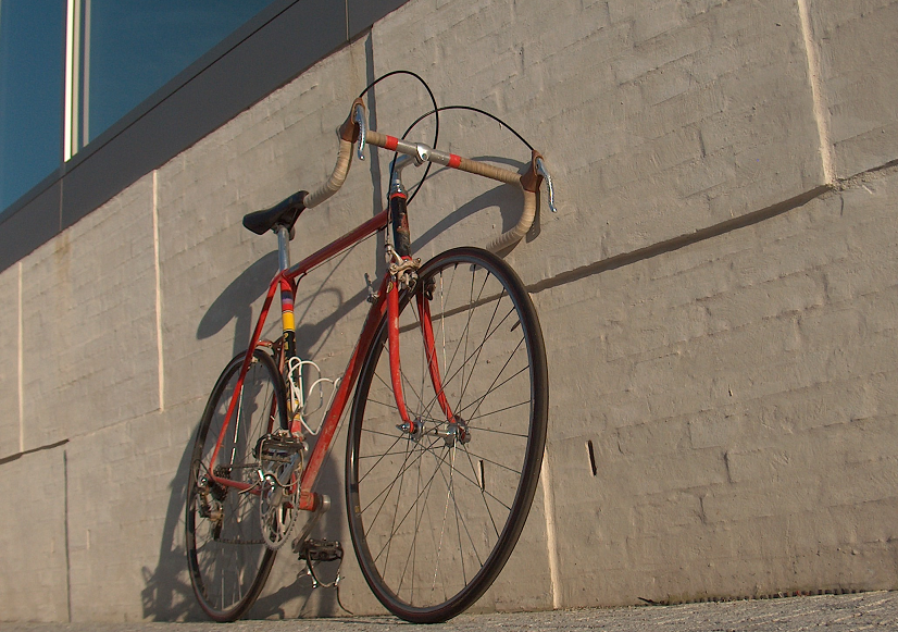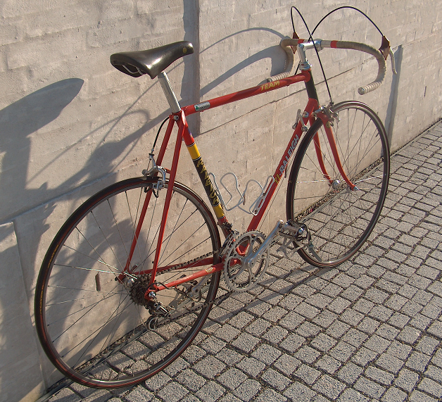 An diesem Rad ist alles original von 1983 bis auf die Schalt-und Bremszüge, die ich im Zuge eines grossen Services ausgetauscht haben. Ich habe das Rad selber 1983 in Neu-Isenburg bei Fahrrad Holzmann gekauft. Und ich bin sogar ein Rennen damit gefahren, weil die Renngazellen nicht rechtzeitig fertig wurden. Und dabei Zehnter geworden. Bei Bremen Syke-Okel-Syke.