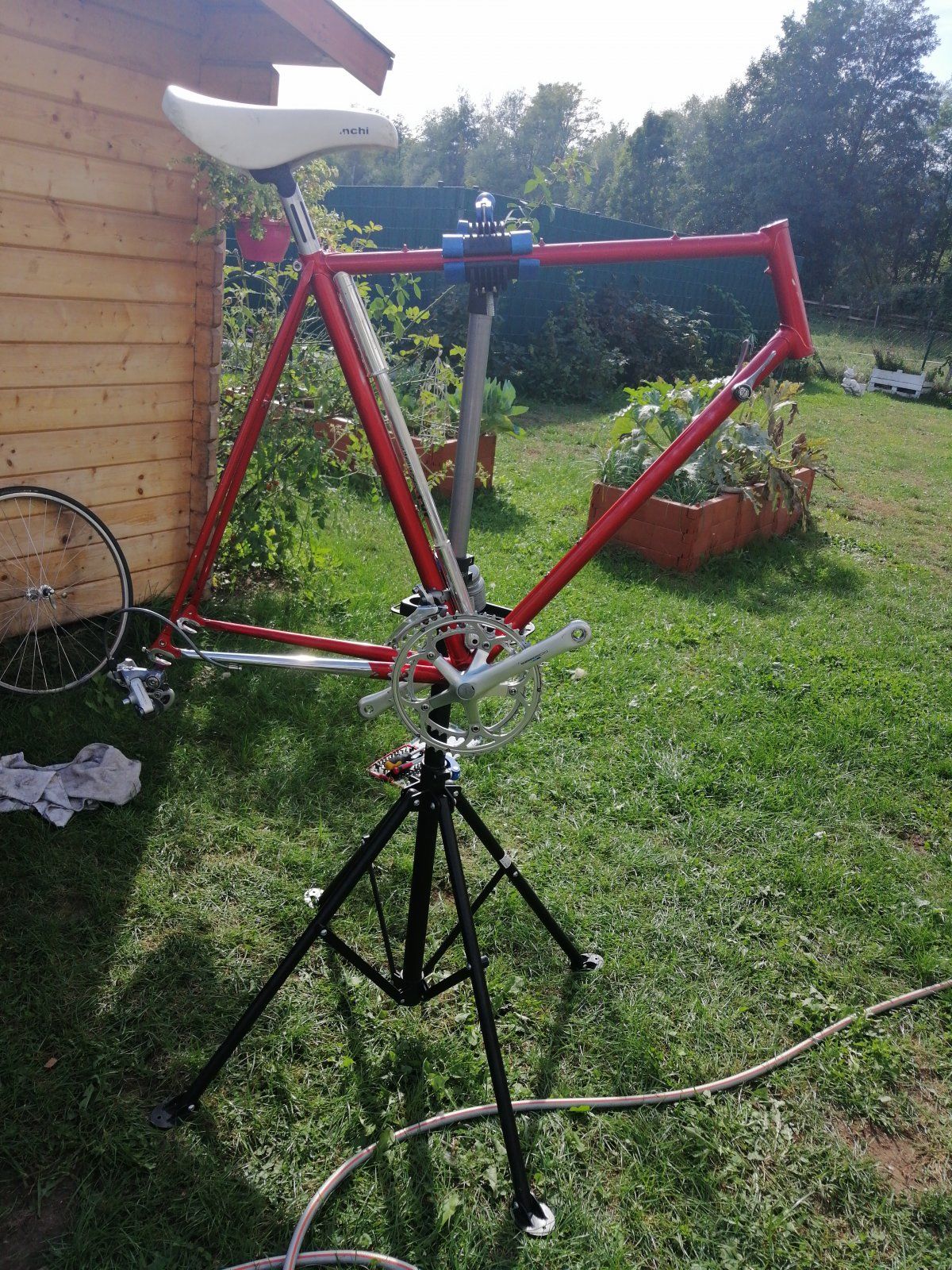 Der rahmen ist wohl einer der wichtigsten überhaupt für mich, da ich als ich 3 Jahre alt war, das erste Mal auf das Thema rennrad gekommen bin. Der rahmen war von dem damals neuwetigen bianchi rennrad meines Vaters, mit dem er später schwer stürzte...