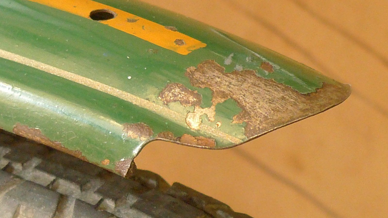 Den Rost habe ich erst mit eine Messingbürste soweit wie möglich entfernt und den Rahmen dann mit Owatrol behandelt. Das stoppt den Rost und gibt schönen Glanz!