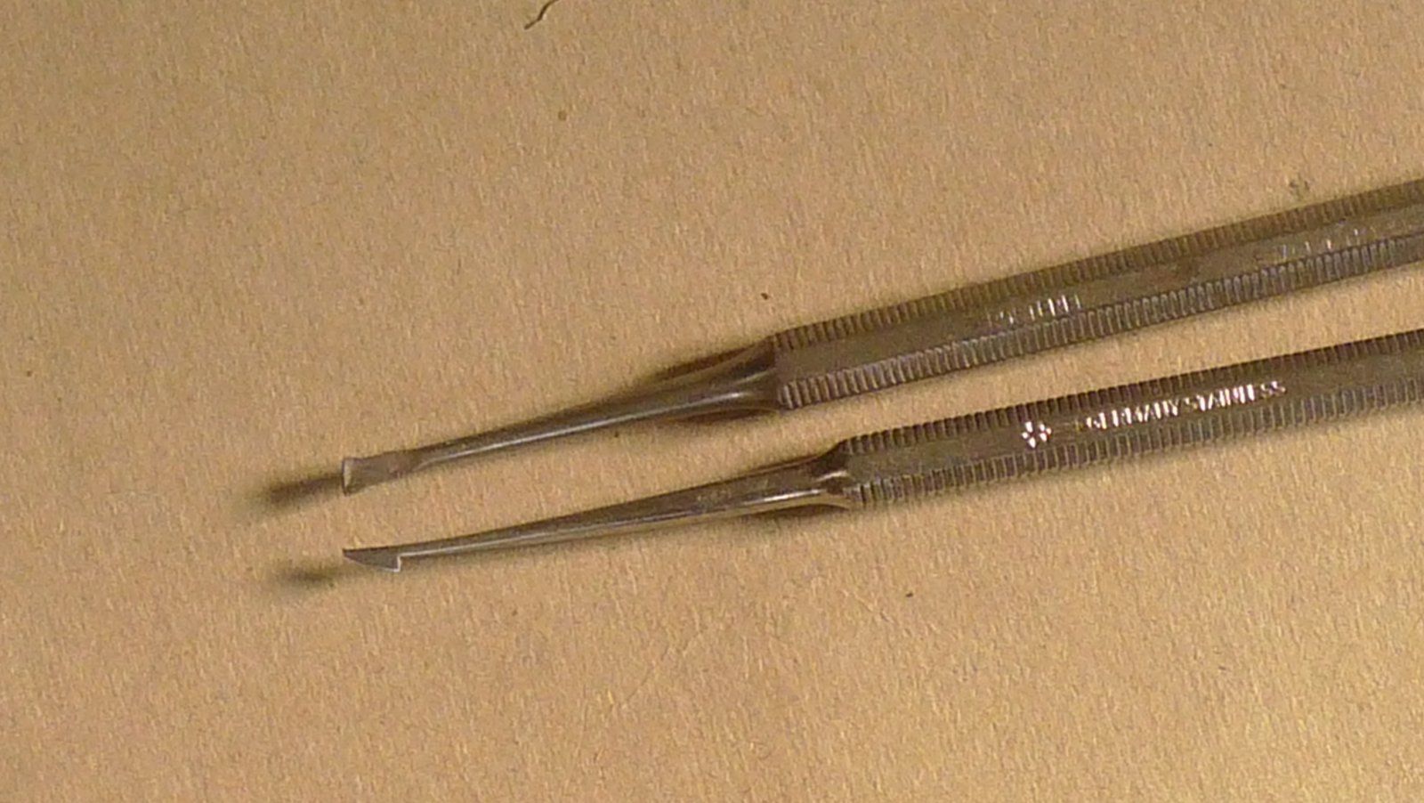 ich schabe Stellen an denen sich der Lack aufgeworfen und/oder dicker Flugrost angesetzt hat mit ausgemustertem Zahnarztwerkzeug .