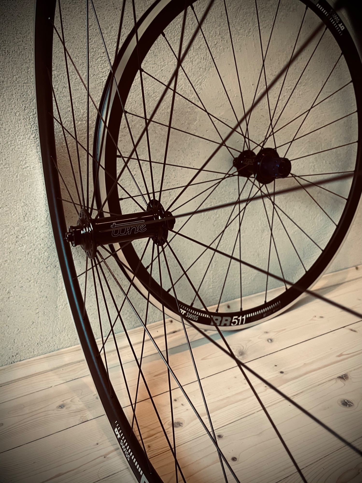 Vorne hätte ich auch Sapim Laser genommen wegen Optik und ich hätte mit den Speichenköpfen nach aussen eingespeicht.Naben Bitex RAF12 + RAR12 130 mm