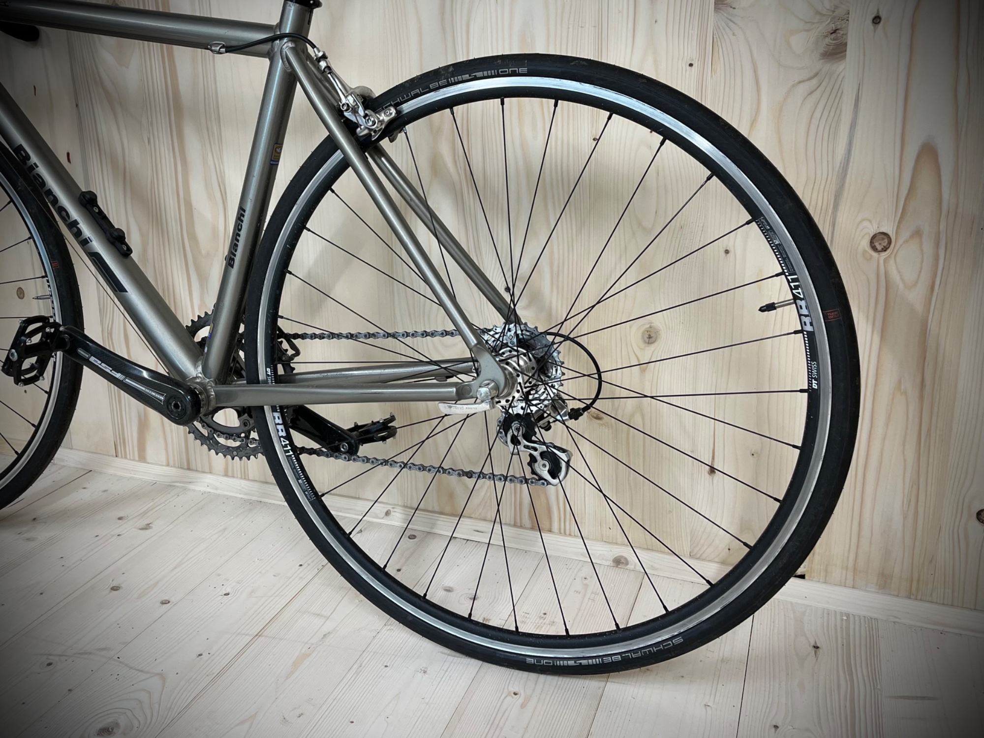 hinten links Sapim Laser (durchschn. ca. 635 N Speichenkraft)