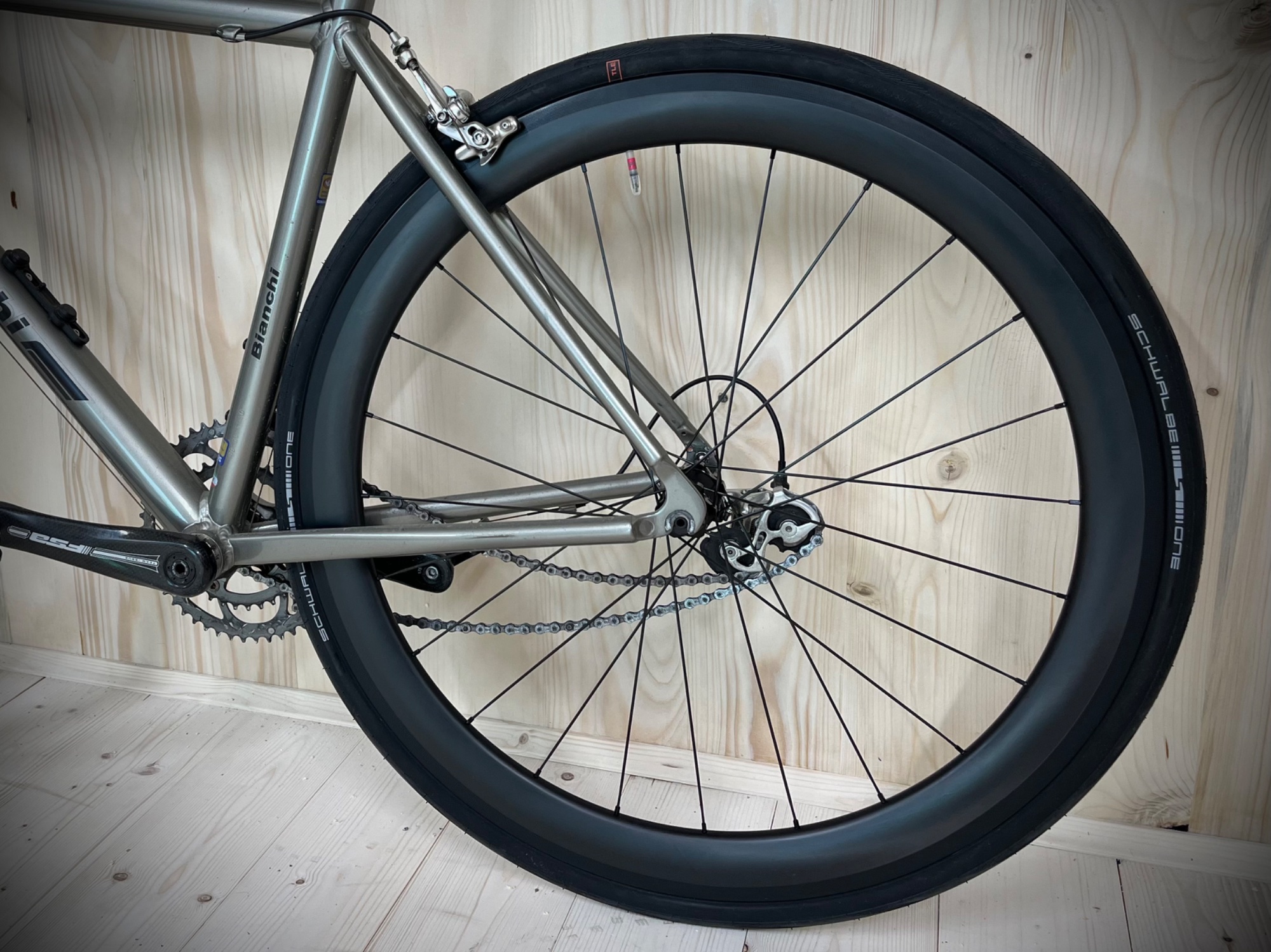 Da sind jetzt 25mm Vittoria drauf. Mehr fahr ich am Rennrad nicht. Bin nicht so für die weiche Welle. Ich hatte auch bei 21mm keine Tränen in den Augen.Welche Reifenbreiten willst du denn auf diesen superschmalen Felgen fahren?
