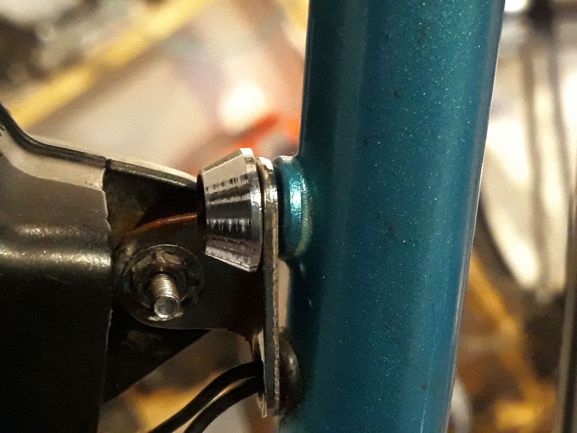 Der hintere kleine GT ist nur dran, weil da ein Rücklicht befestigt ist. Ein Rücklicht für ohne GT (an den Strebenschrauben befestigt) kommt bald ran, ein bedarfsweise montierbarer großer GT liegt auch schon bereit, aber der muss noch poliert werden.