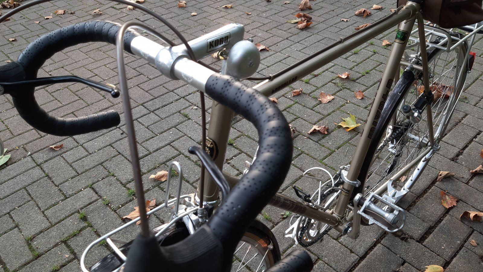 Ein Louison Bobet aus den 1960er Jahren (?). Gebraucht gekauft und schon einigermaßen hergerichtet. Die Anlötteile und die 32er Bereifung lassen mich vermuten, dass das Rad mal als Randonneur gebaut wurde.