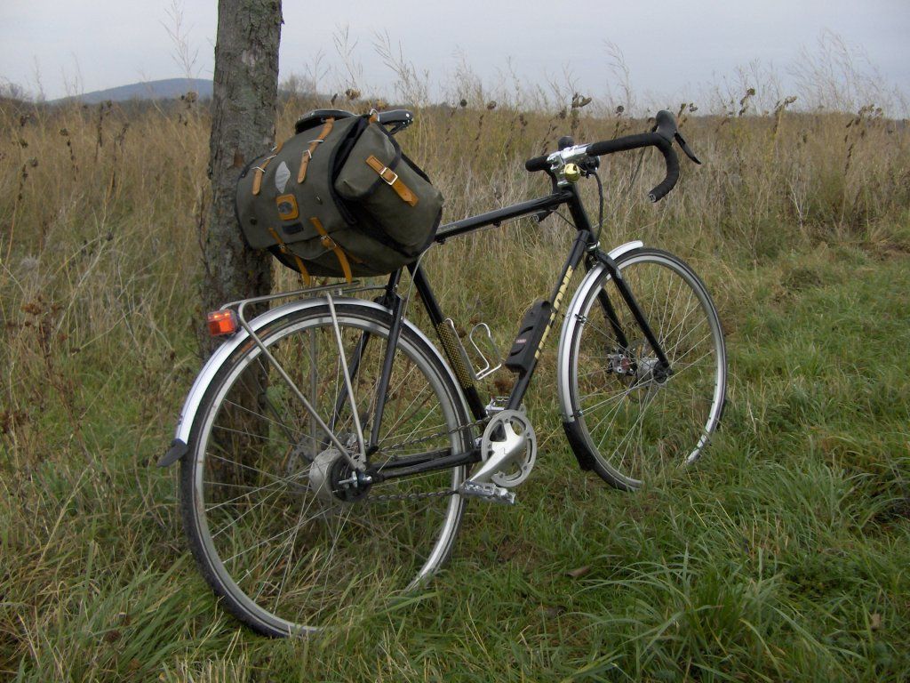 Passend zum Wetter jetzt mit SKS Olympic Racer 35mm, vorn ist der lange Spritzschutz der SKS Longboards dran die es leider nicht in 35mm Breite gibt (aber den Spritzschutz, warum auch immer:)). Hinten würde der obere angenietete Halter genau da sitzen wo der Halter an Gepäckträger/Rücklicht sitzt. Deswegen habe ich die Nieten der beiden hinteren Halter aufgebohrt und die Halter entfernt. Ein Niet blieb oben als Verschluß drin, das Loch des anderen passte genau an den Tubus-Halter. Das Schutzblech hinten habe ich dann noch passend gekürzt und einen kleinen Spritzschutz montiert, so bleiben Tasche und Rücken auch bei 40-50 trocken. Schlanke Optik und Wetterschutz zusammen geht nunmal nicht.