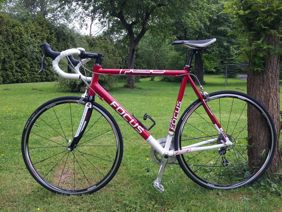 Hat aber mittlerweile Look Pedale und andere Flaschenhalter. Den wollte ich eigentlich für mein Frauchen haben. Für Sie aber zu groß und bei 400€ Kaufpreis habe ich dann das Rennradfahren angefangen:rolleyes: