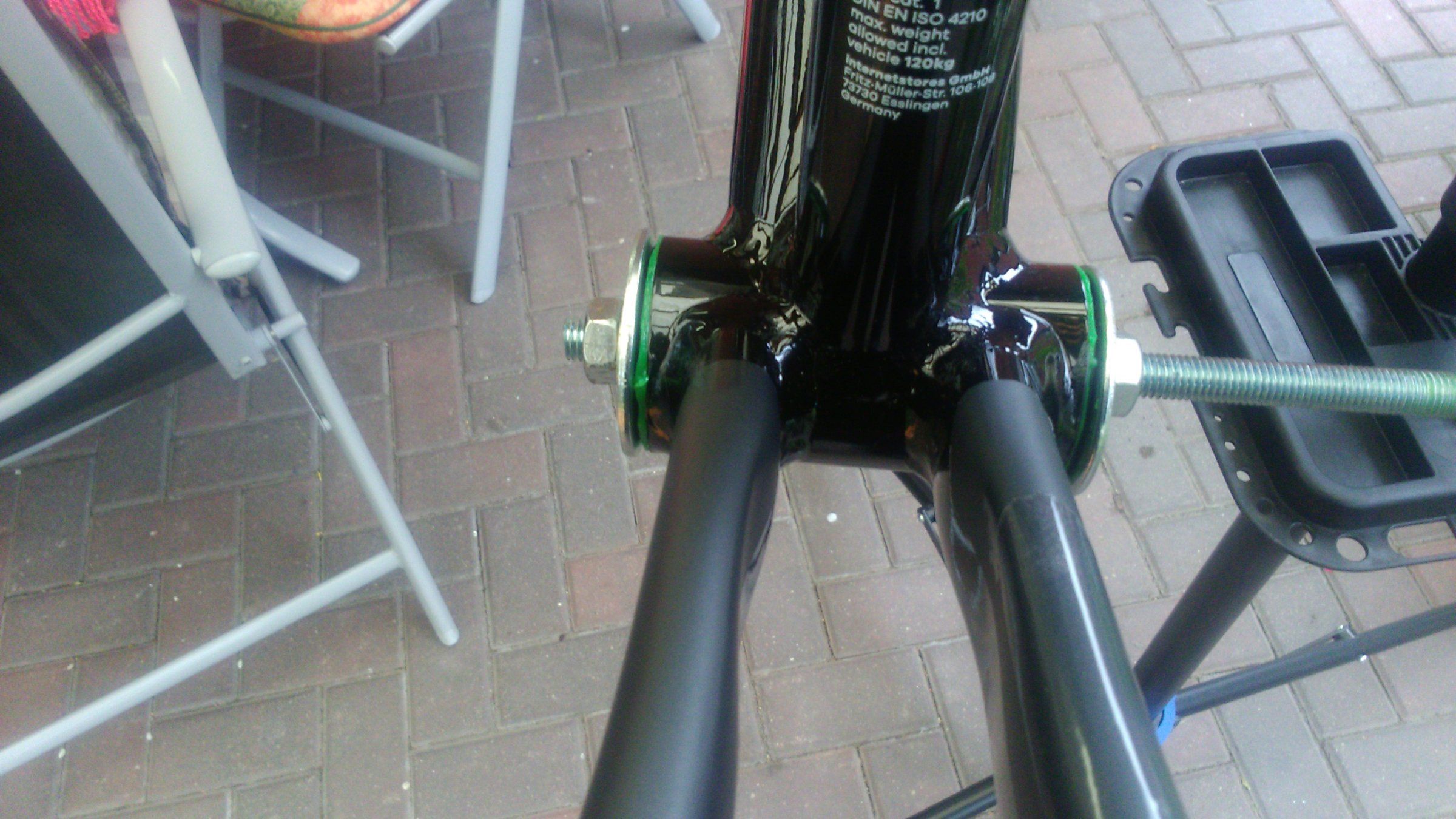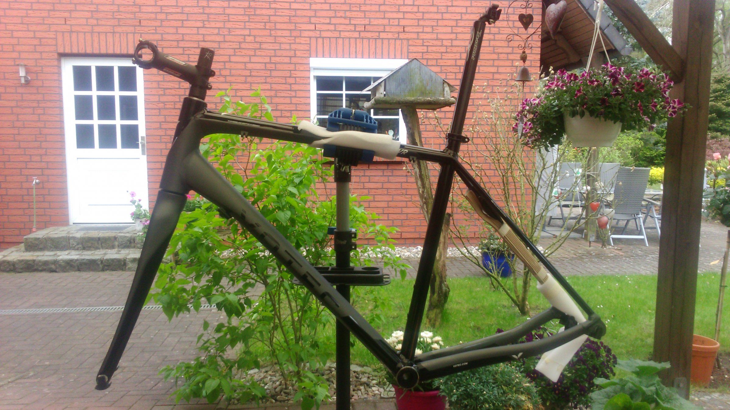 Die Ösen am Rahmen sind auf dieser SeiteDie Hülle gehört doch auf die andere Seite, also links am Sitzrohr vorbei
