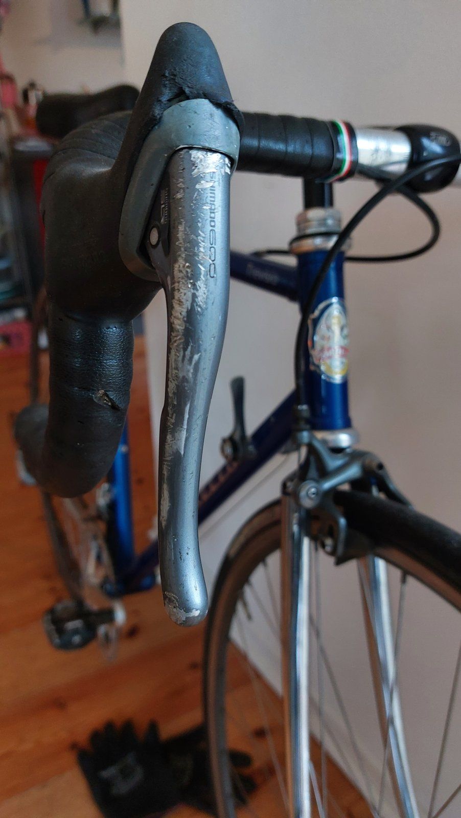 Ich habe schonmal mit den Bremsen und den Bremshebeln angefangen, der Rest kommt noch. Die alten Tricolore Bremsgriffe waren auch schon übel zerkratzt...