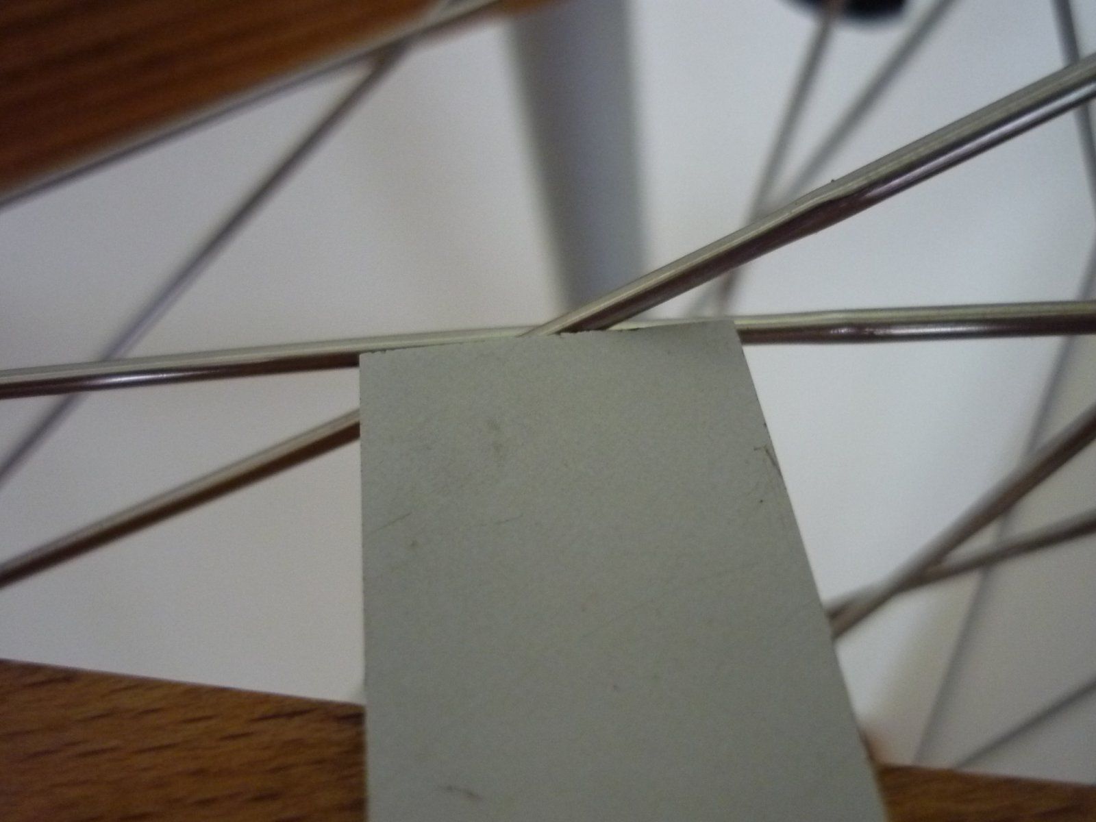 Hier berührt die äussere Speiche der letzten Kreuzung so eben die weisse Kunststoffleiste beim Vorbeidrehen.