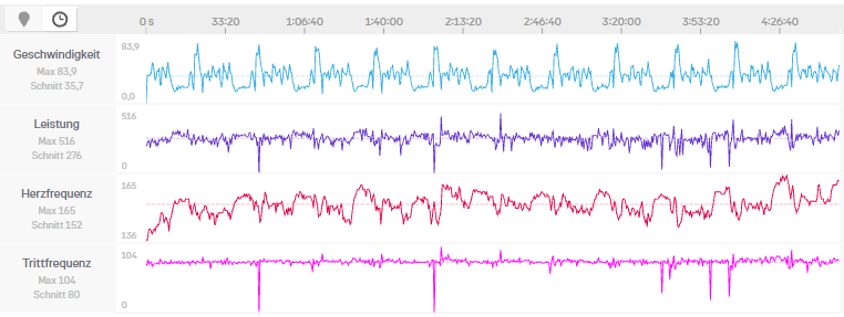 Dabei sind die Abweichungen schon signifikant. Orientiere ich mich an den Wattzahlen, wäre ich wahrscheinlich nur bei 50% der maximalen Herzfrequenz, wenn überhaupt.