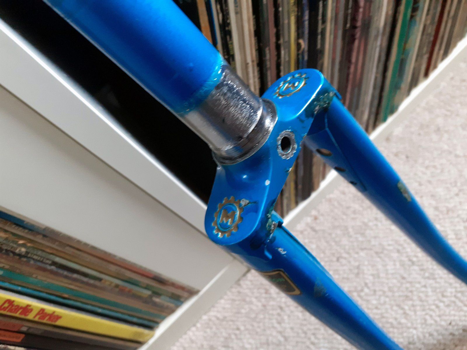 Meine 1980er hatte den gleichen Gabelkopf aber darauf das Gazellepanto und nicht die schönen Innenverstärkungen mit den 3 Löchern. Vermutlich nicht die originale aber eine sehr schöne Gabel. Wenn die vakant ist und einen Schaft länger als 230 mm hat, wäre ich interessiert.2. Ich würde sagen, die Gabel gehört nicht zum Rahmen. Der Stil passt nicht und zudem komplett verchromt während der Rahmen keine Chromsöckchen hat? Glaube nicht, dass das die ursprüngliche Kombi ist.