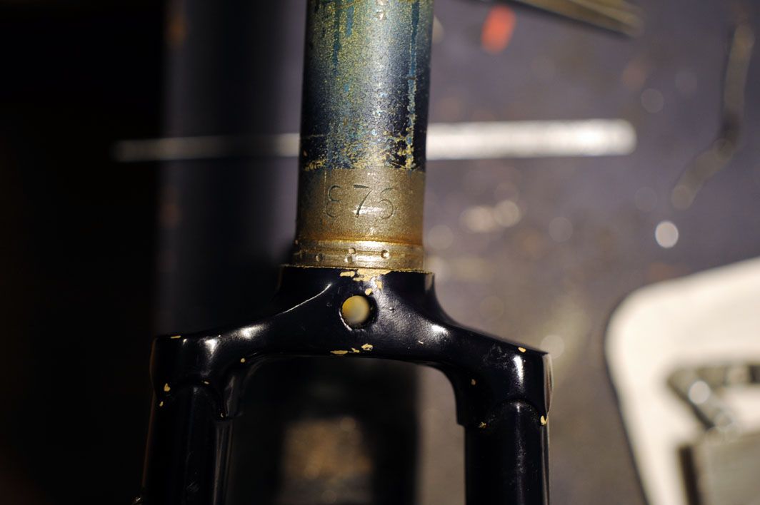 Ich habe das Rad jetzt demontiert und die Gabel sieht gerade aus. Aber denr Lagersitz ist zerwürgt und mit stumpfen Körnerschlägen wurde versucht, daß Gabelkonus besser klemmt. Hat es auch, es konnte nicht mal ganz bis auf den Lagersitz nach unten. Da war noch ein Lichtspalt zu sehen...