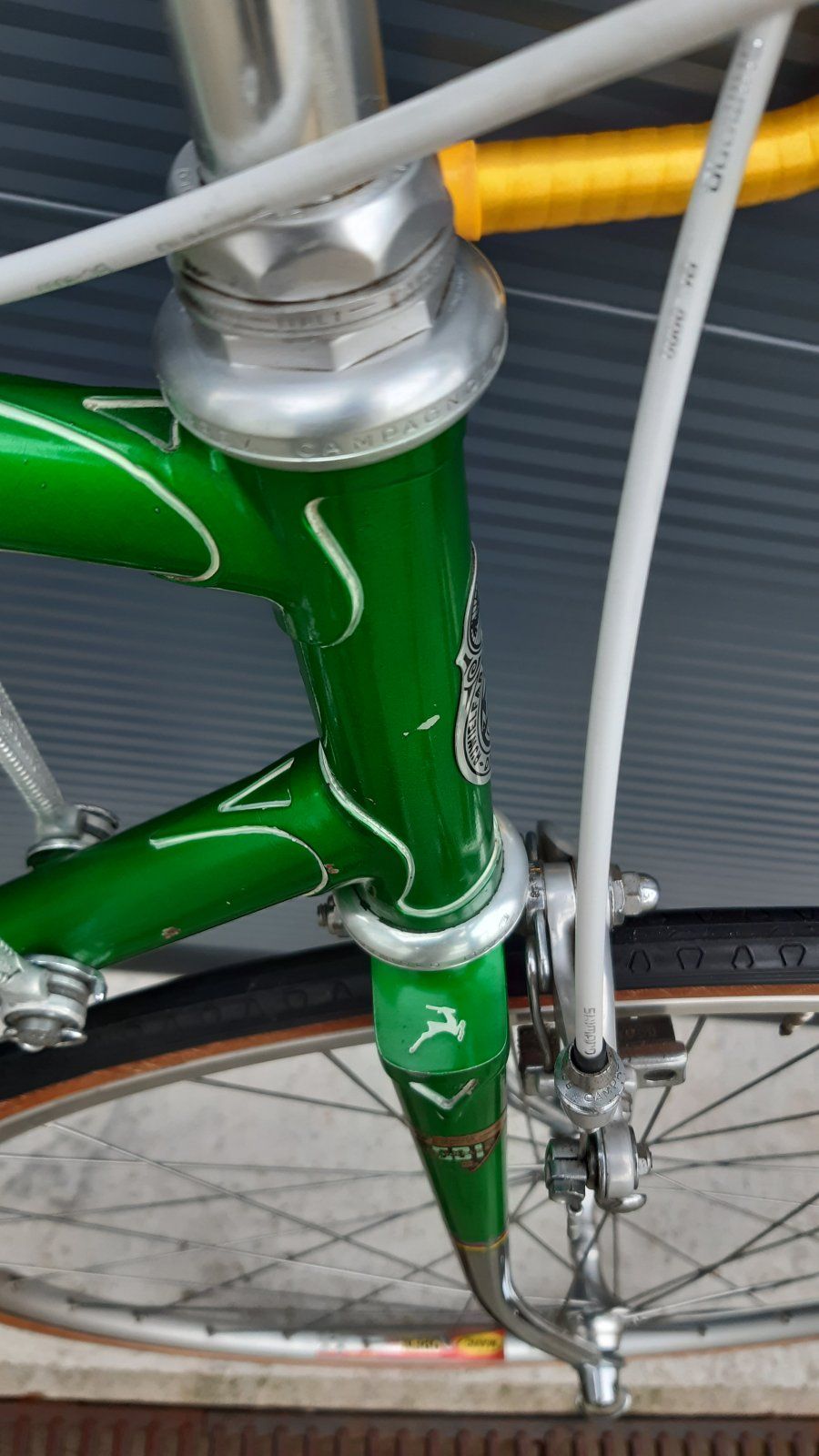 Ich stelle mal meine Brot und Butter Gazelle vor. Der Springbock kam ziemlich abgewirtschaftet, aber komplett um das Jahr 2005 bei mir an, und wenn ich ehrlich zu mir selbst bin, habe ich Ihn nur der Farbe wegen genommen. Nach dem üblichen, Reinigungs, Ausstausch und Einstellprozedere gefiel mir das Rad eigentlich gut, und passte von der Geometrie auch perfekt. Regelmässige Bewegungszeiten haben trotzdem nur meine "Italiener" bekommen. 2007 habe die Mavic Felgen mit den original Naben dann mit 28ern Diamantierten Tufo's beklebt, und das größte Ritzel was die Nuovo Gran Sport Schaltet montiert. (Gravel😁) Damit wollte ich die gerade richtig populär werdende Eroica fahren, dazu ist es bis heute nicht gekommen. Firma, Familie, Haus usw.usw. Trotzdem habe ich immer versucht die meisten meiner Räder, mehr oder weniger zu bewegen, nur der Springbock wurde einfach vergessen😇 Jetzt mal ein paar Bilder und wenn die passenden Pedale montiert sind dreh ich auch mal ne Runde........Anhang anzeigen 1406501Anhang anzeigen 1406507Anhang anzeigen 1406499Anhang anzeigen 1406506Anhang anzeigen 1406504Anhang anzeigen 1406503Anhang anzeigen 1406498