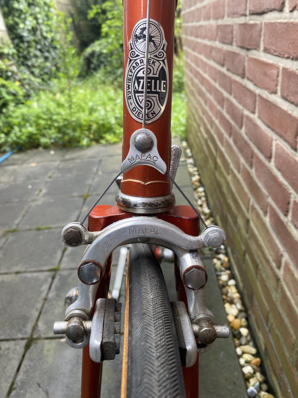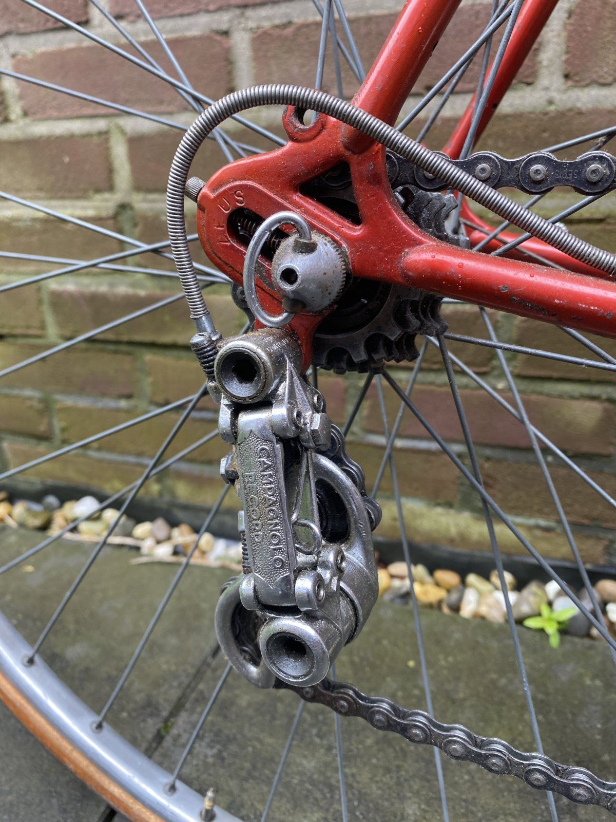 Das Campagnolo Record Schaltwerk, der Brooks Professional Sattel, 3ttt-Lenker und die Mafac-Bremshebel waren ursprünglich nicht dabei. Die Mafac Dural Forge Bremsen und Stronglight 63 Kurbelgarnitur wohl, sowie die Campagnolo Sattelstütze, Umwerfer und Schalthebel.