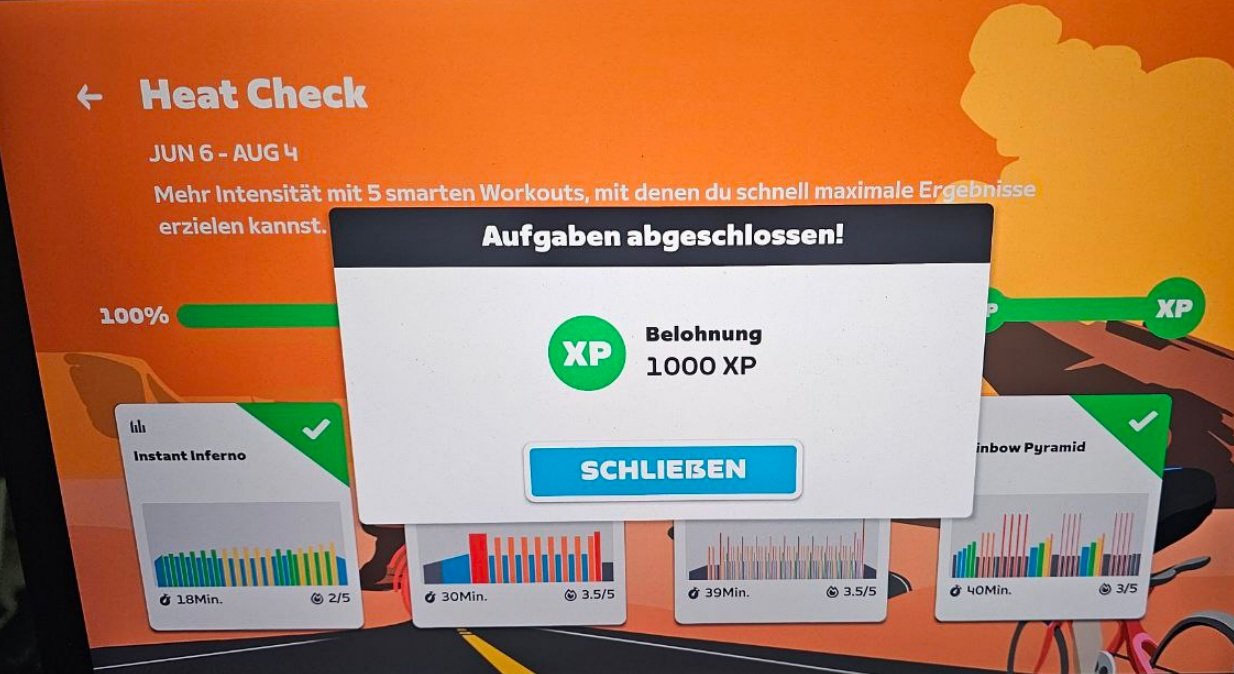 bin grad vom Bike gestiegen. Bei beiden steht "für die 5 workouts" gesamt XP 2000.