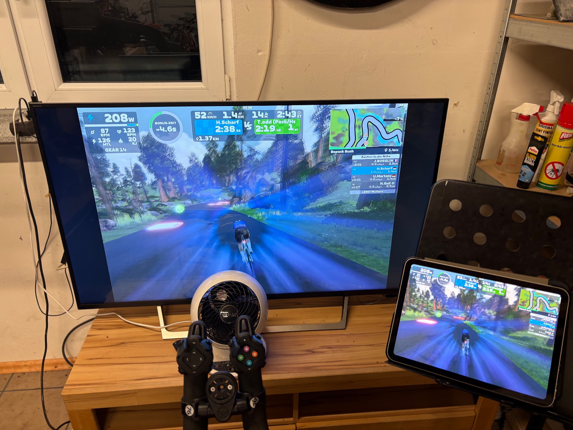 Als ich Zwift noch mit normaler Kassette auf der Rolle gefahren bin, konnte ich das ganze zumindest mit hochschalten wieder ausgleichen.