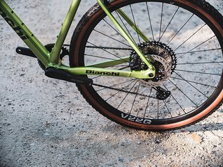 Für ein Adventure-Gravelbike beschreitet Bianchi bei der Geometrie den Mittelweg und liegt beispielsweise recht nah an anderen Bikes wie dem Norco Search oder dem Specialized Diverge. Letzteres bietet dabei mehr Stack und dürfte sich bei einer ähnlichen Oberrohrlänge wohl komfortabler und aufrechter fahren. Die Kettenstreben des Arcadex AL sind mit 435 mm in allen Rahmengrößen relativ lang und versprechen viel Stabilität auf Abfahrten.