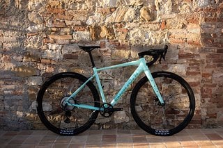 Bislang bietet Bianchi eine einzige Ausstattungsvariante des Arcadex AL an. Für 2.250 € (UVP) bekommt man hier eine Shimano GRX 12-fach-Schaltung mit der großen 10-51t Kassette und Komponenten von der Hausmarke Velomann. Ab Werk sind zudem Pirelli Cinturato Reifen in 45 mm Breite verbaut.