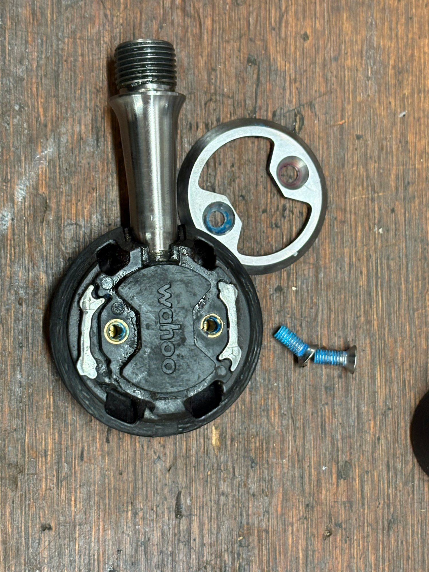 Mit der Adapterplatte wird auch die Position der Achse in Längsrichtung des Schuhs festgelegt. Wer von einem anderen Pedal-System wechselt, tut gut daran, die vorherige Achsposition auf dem Schuh anzuzeichnen. Ist die Adapterplatte angebaut, müssen noch die Feder und deren Abdeckung mit vier Schrauben befestigt werden. Dabei lässt sich auch die Position des Schuhs quer zur Fahrtrichtung festlegen. Die vier Befestigungsschrauben dürfen nicht zu fest angezogen werden, sonst könnte die Beweglichkeit der Feder behindert und somit die Funktion eingeschränkt werden. Wahoo empfiehlt ein Anzugsmoment von lediglich 2,5 Nm.